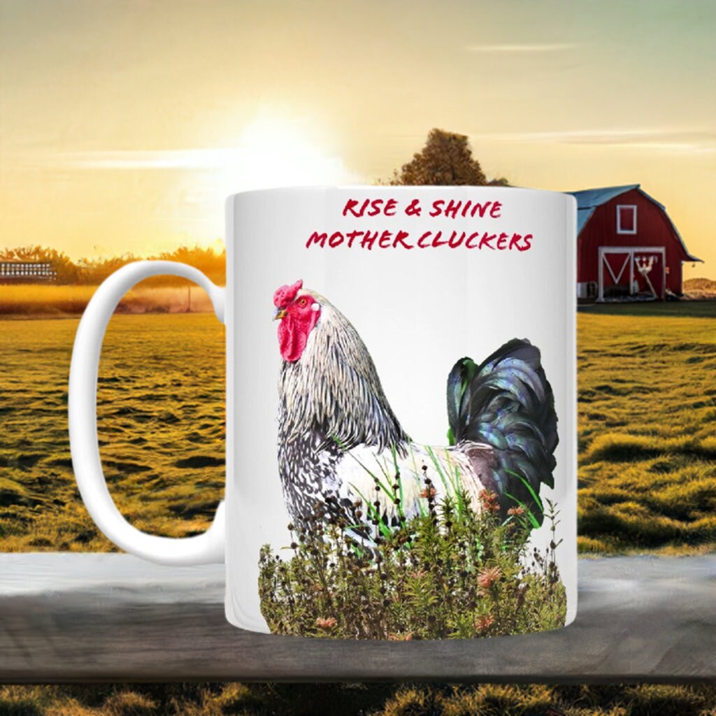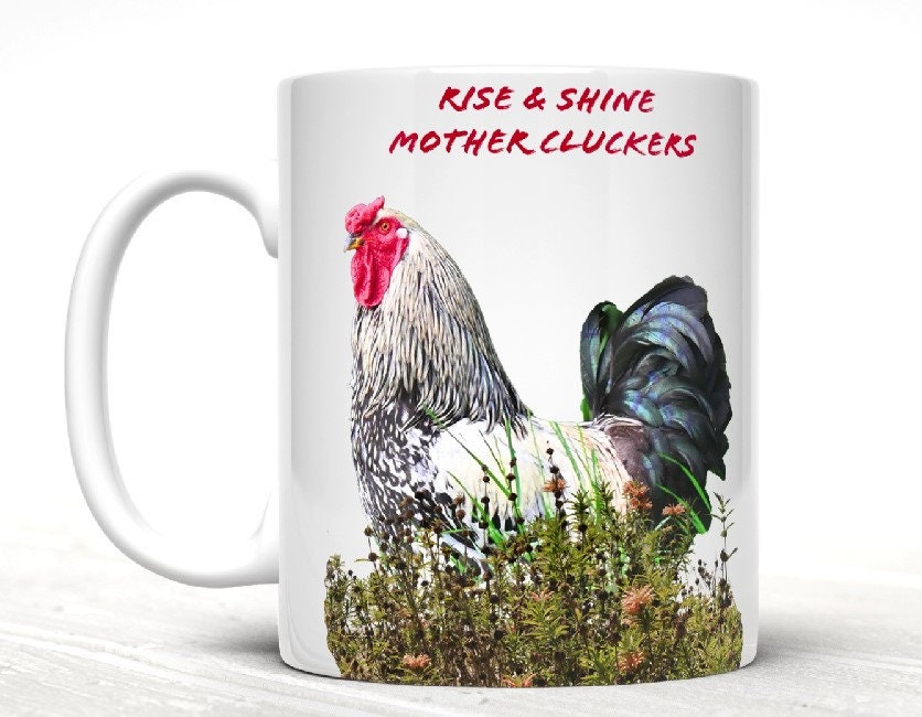 Rise and shine with this 11 or 15 oz ceramic mug! Perfect for coffee lovers, it's both microwave and dishwasher safe. With a hilarious rooster design, it's sure to brighten up your morning routine. Get your caffeine fix with a side of sarcastic humor.