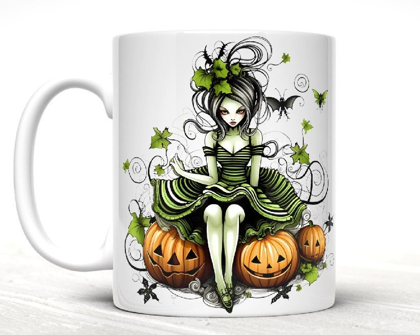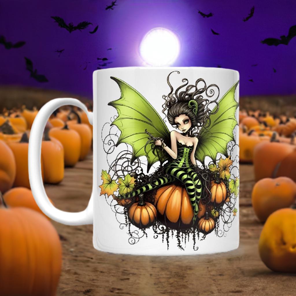 Get in the spooky spirit with our Green Halloween Fae Mugs! Made from sturdy ceramic and holding 11 or 15 ounces, these mugs are perfect for enjoying your favorite hot beverages during the fall season. And don't worry about clean up - they are both microwave and dishwasher safe for your convenience. Get yours today and bring some Halloween magic to your morning routine!
