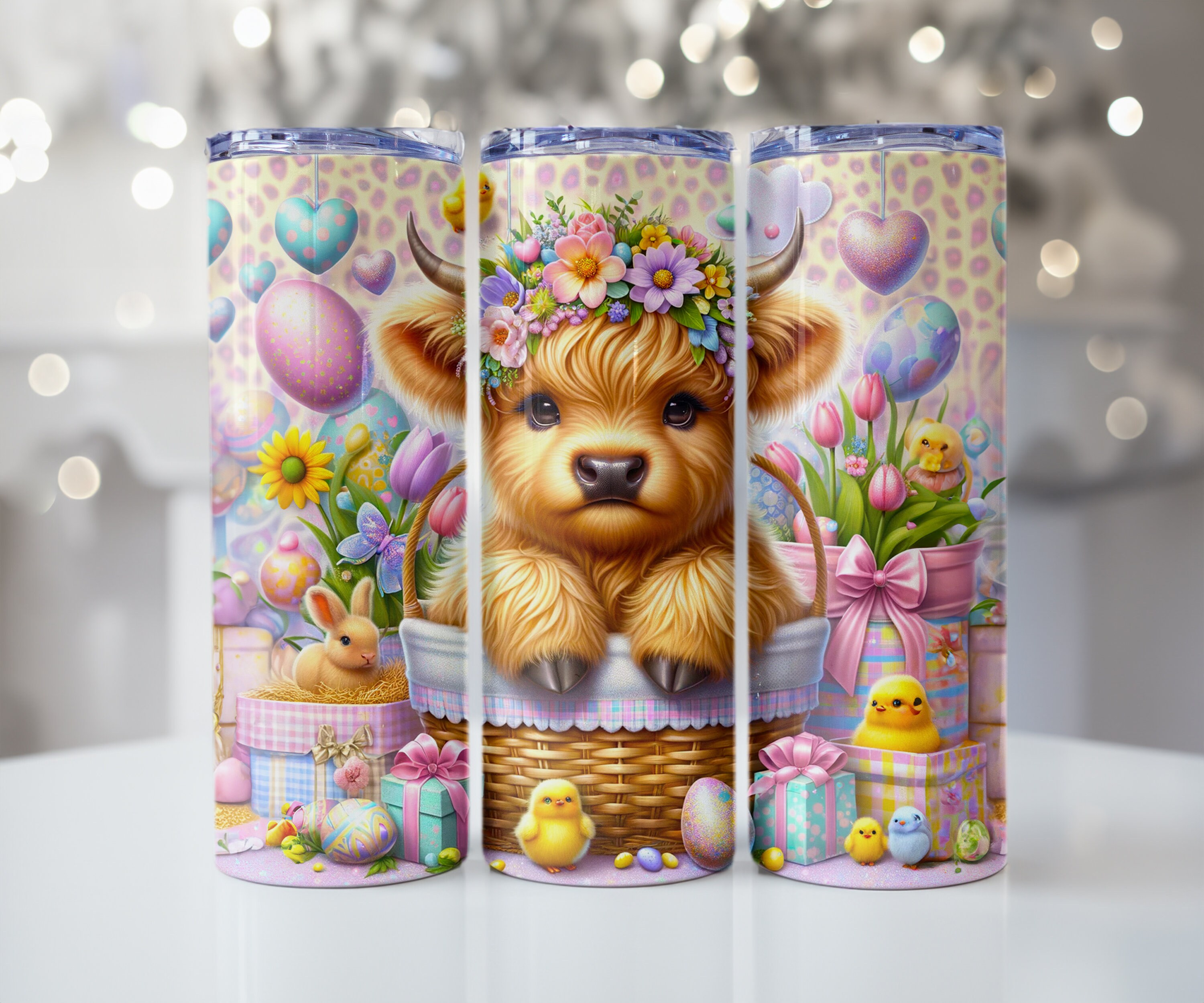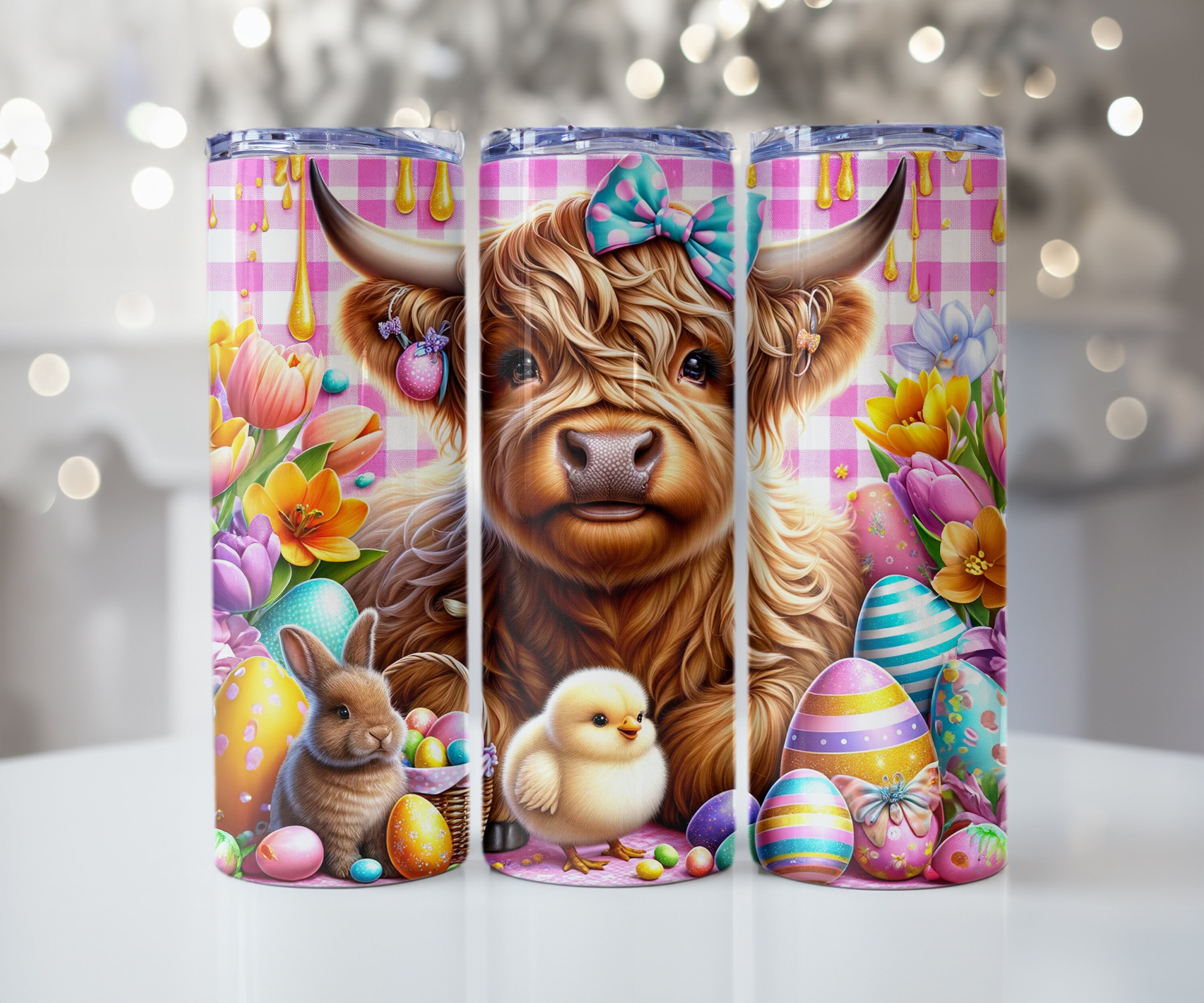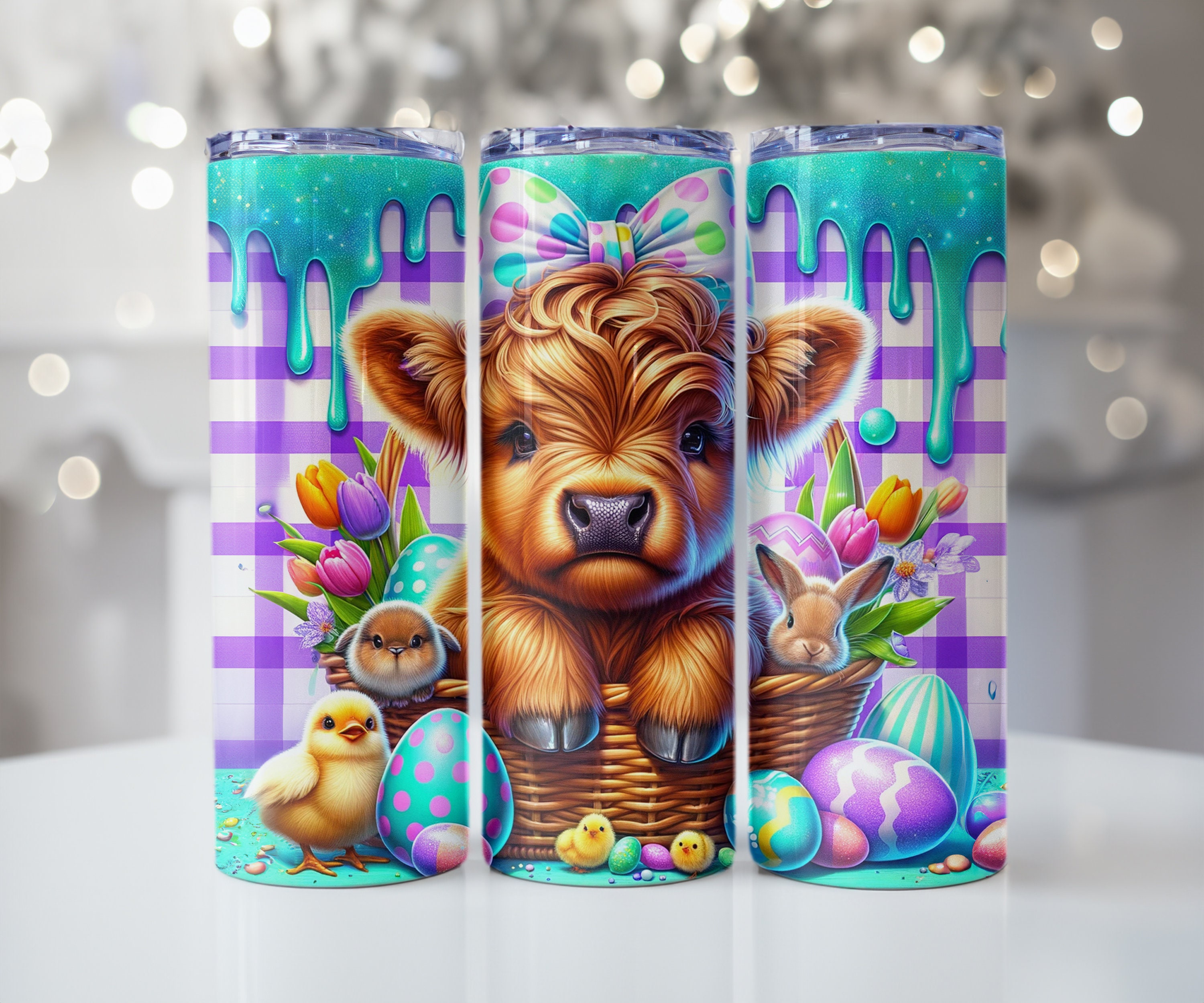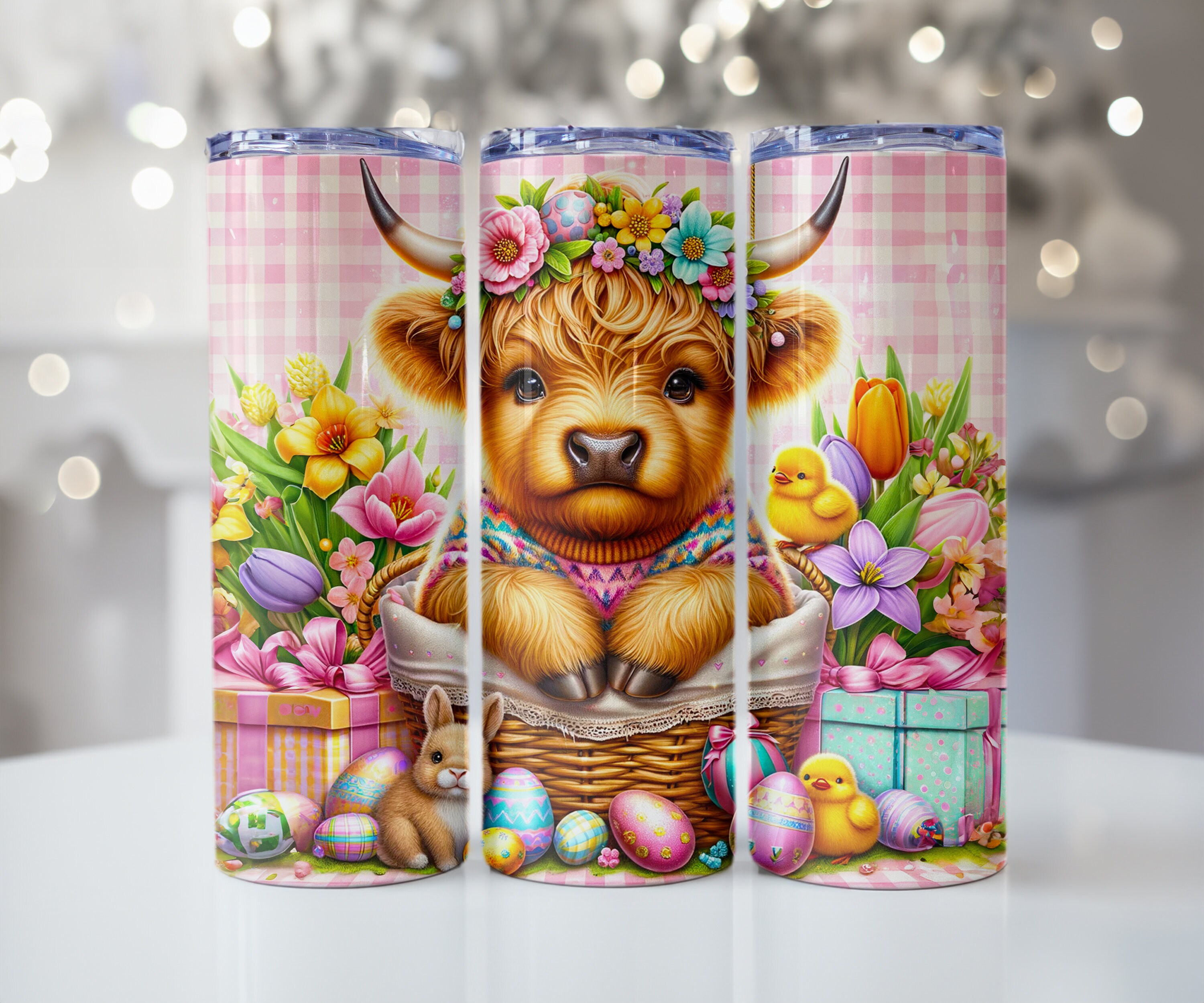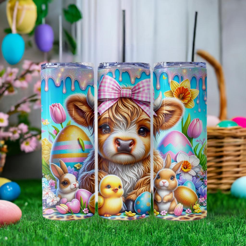 Sip in playful style with our Easter Highland Cow Tumblers! Made of stainless steel with a lid and straw, these tumblers come with a convenient cleaning brush and feature adorable Easter-themed highland cows. Drink up with a touch of whimsy!