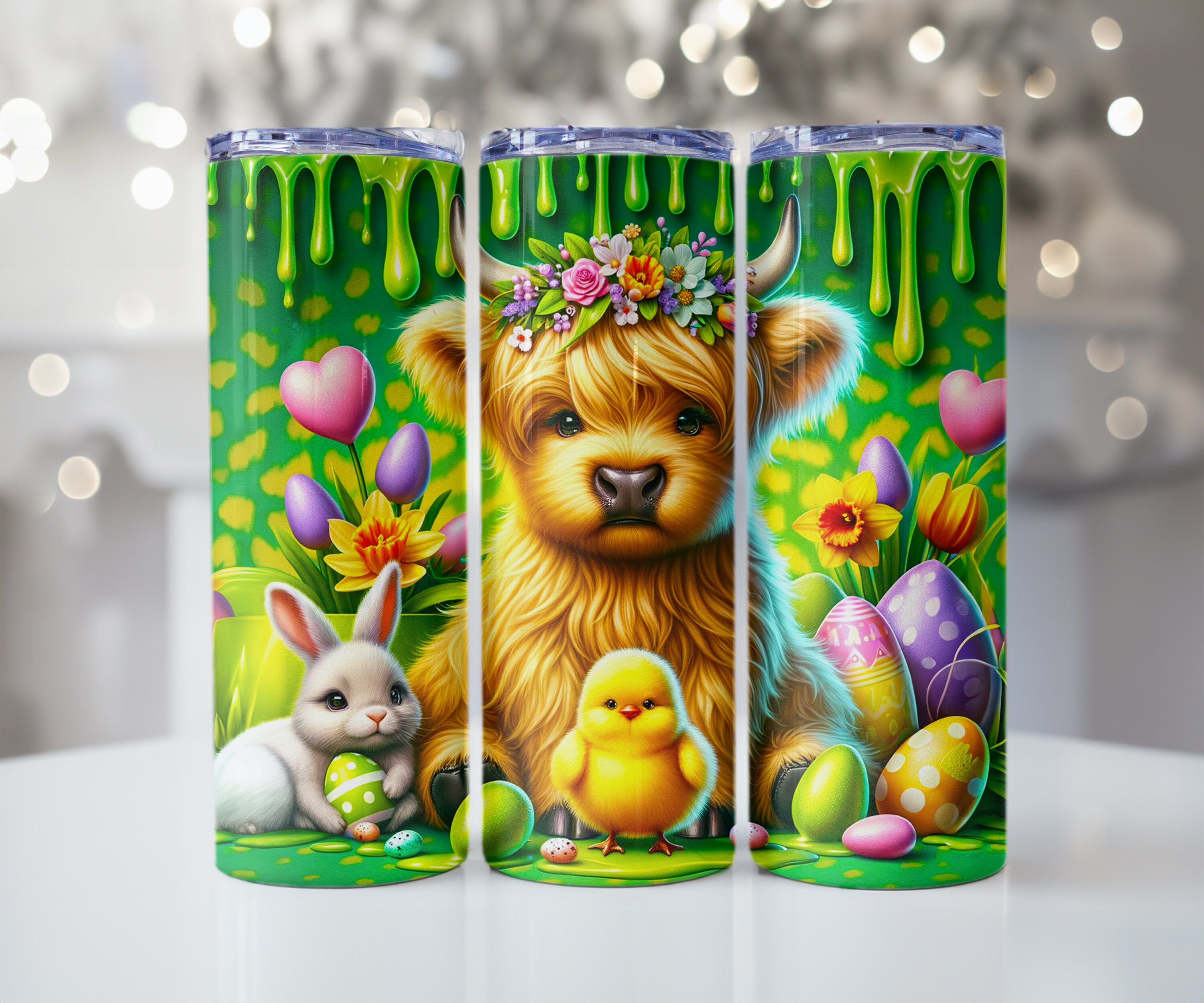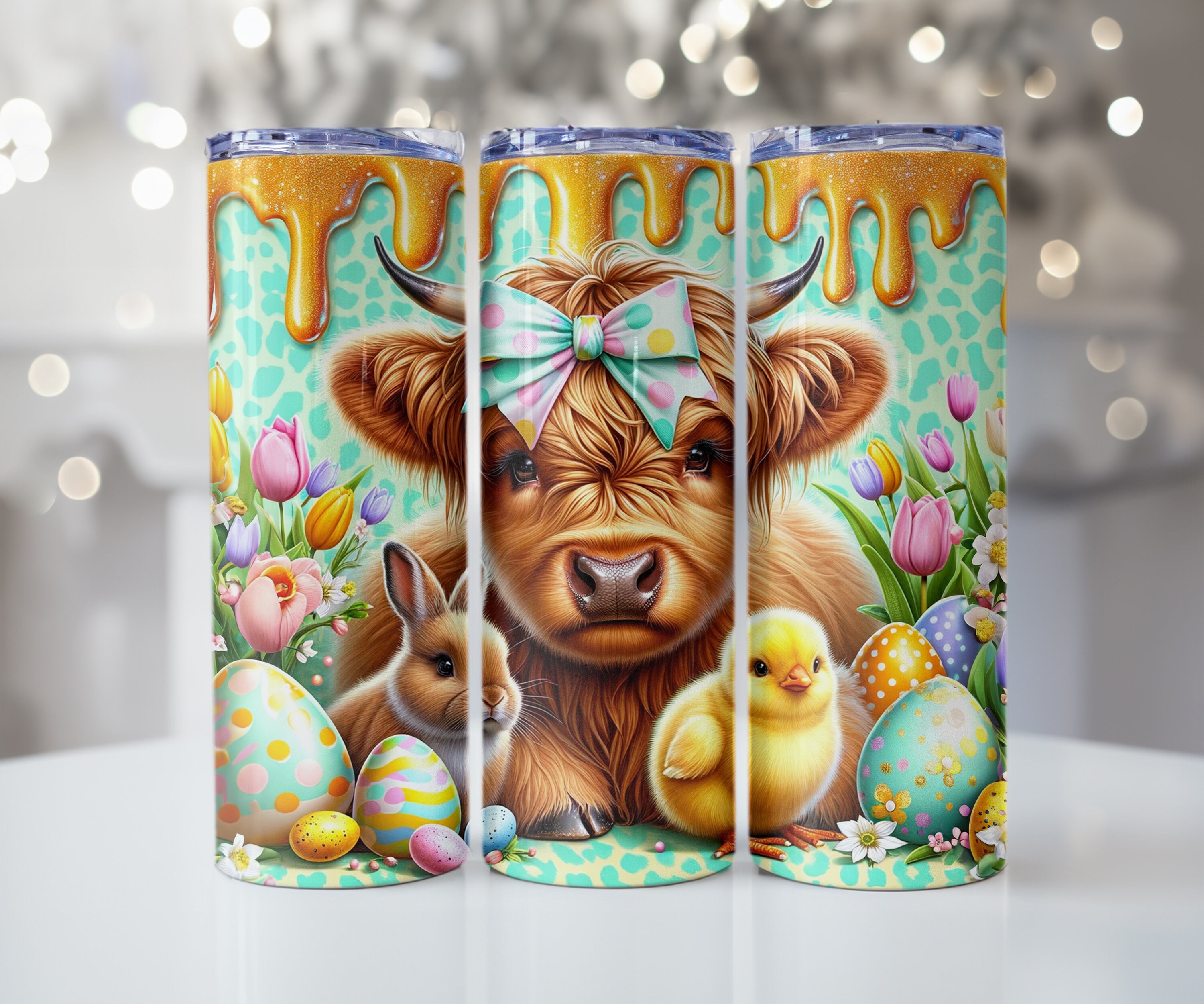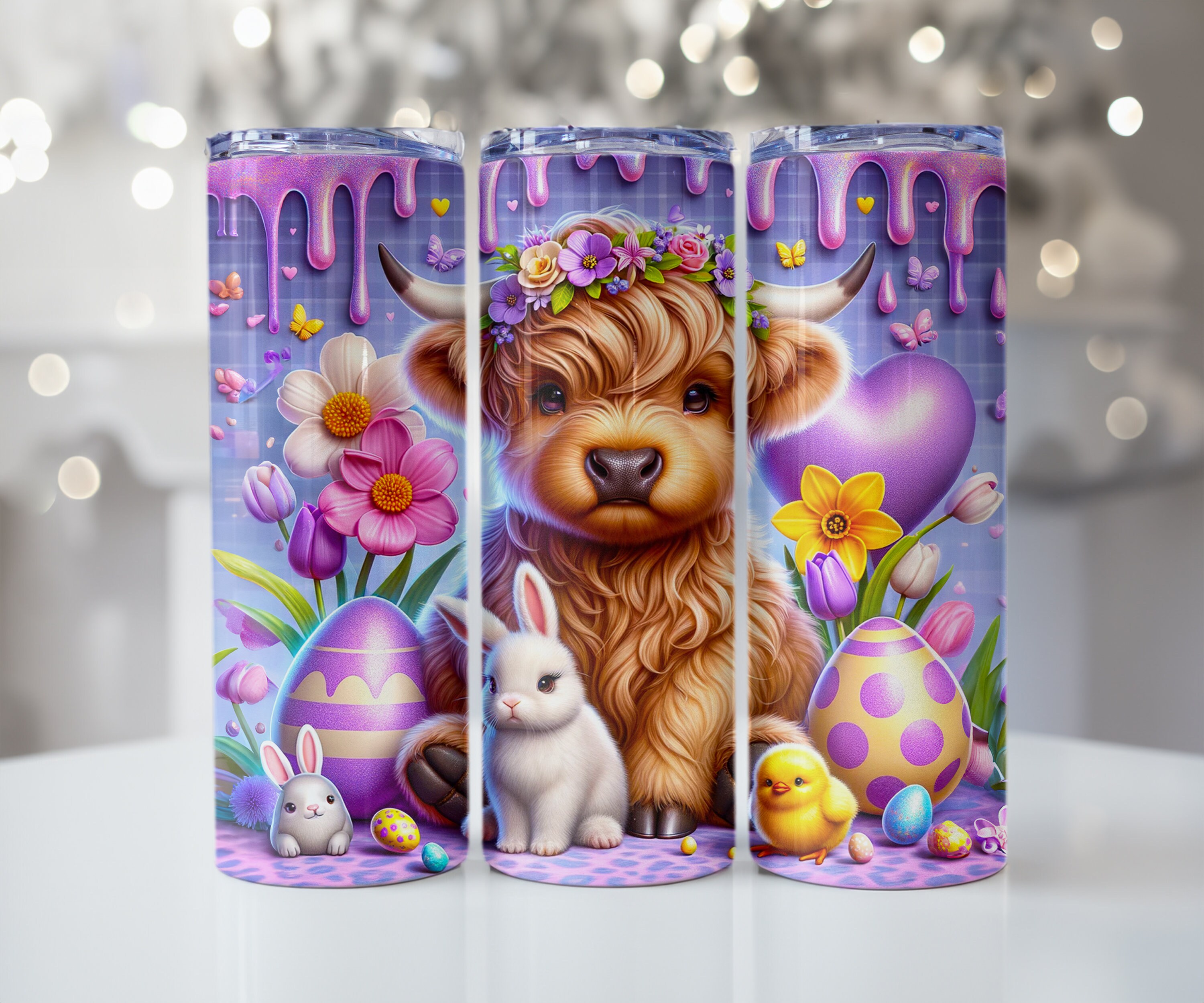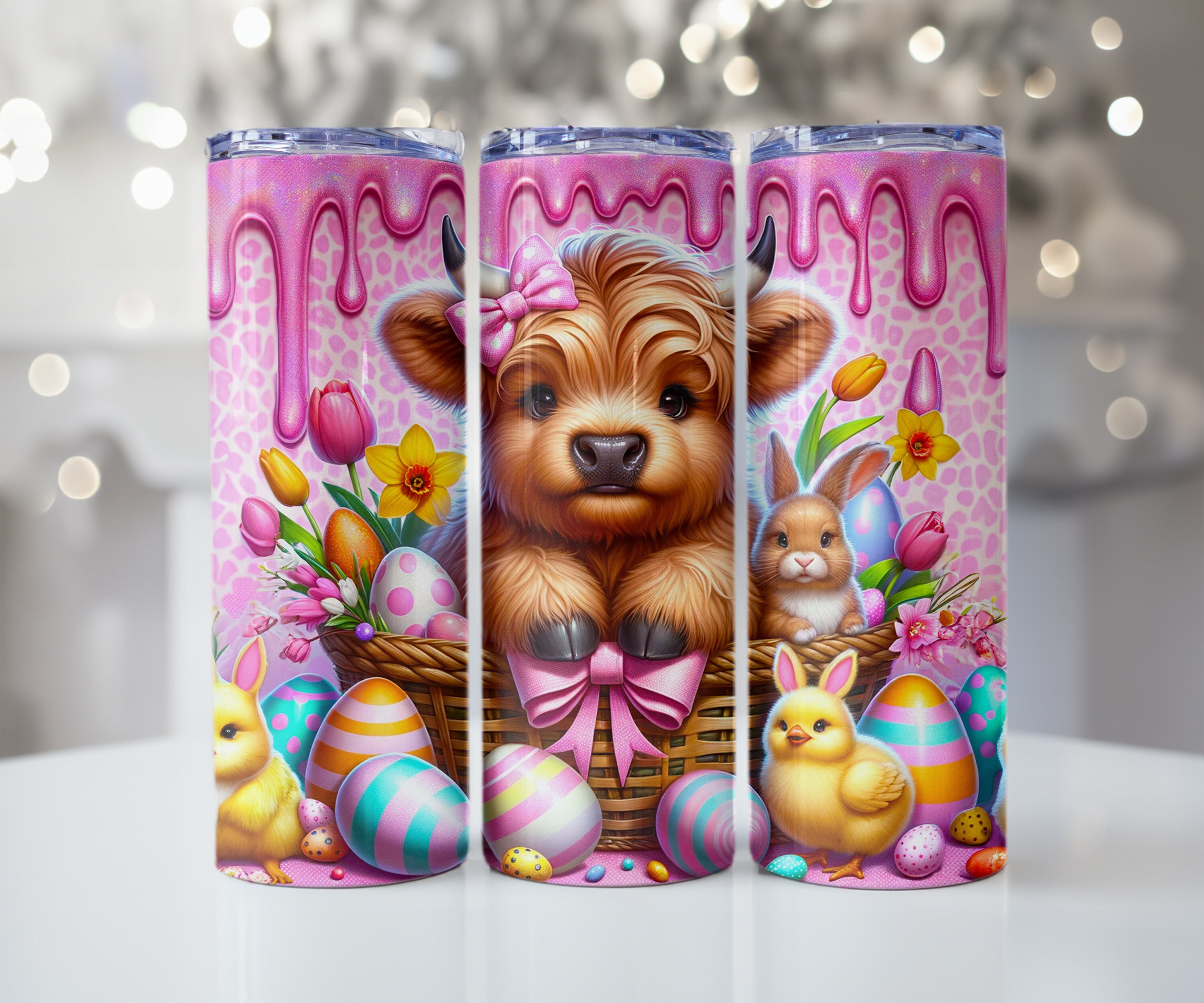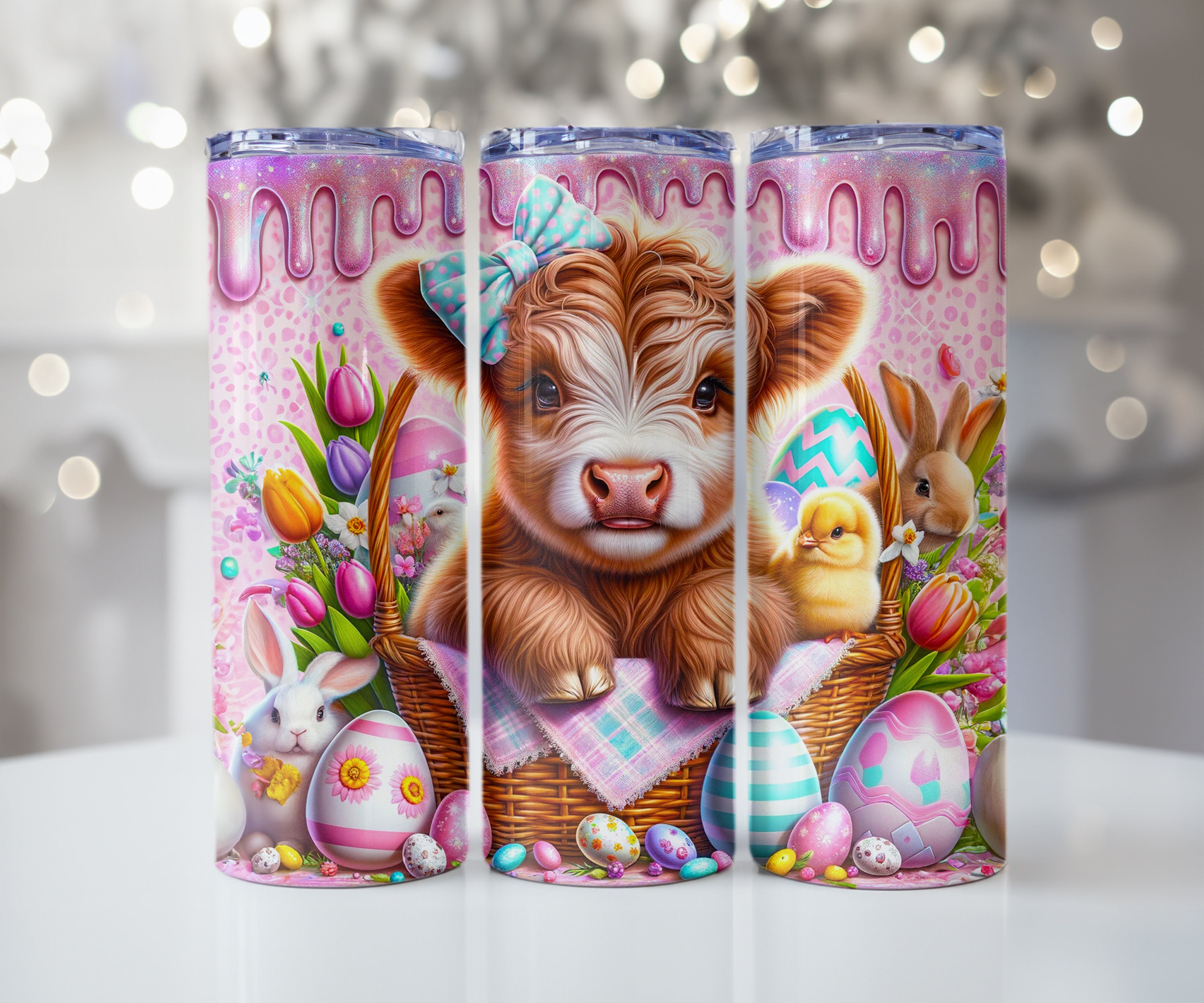 Sip in playful style with our Easter Highland Cow Tumblers! Made of stainless steel with a lid and straw, these tumblers come with a convenient cleaning brush and feature adorable Easter-themed highland cows. Drink up with a touch of whimsy!