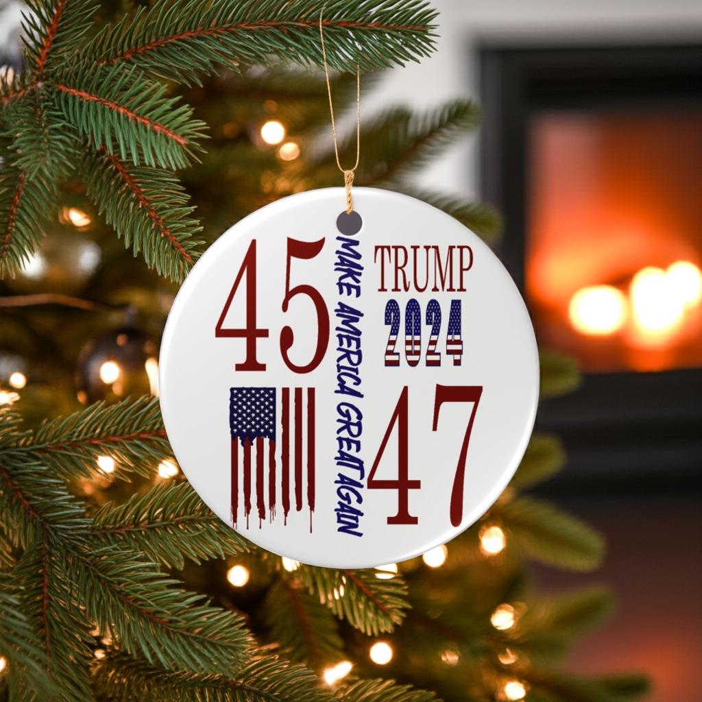 Add a touch of presidential charm to your holiday tree with our Trump 45/47 Ornament! Made from sturdy mdf, this 3-inch ornament is perfect for showcasing your love for America. Celebrate the 45th and 47th presidents with this unique addition to your holiday decor!