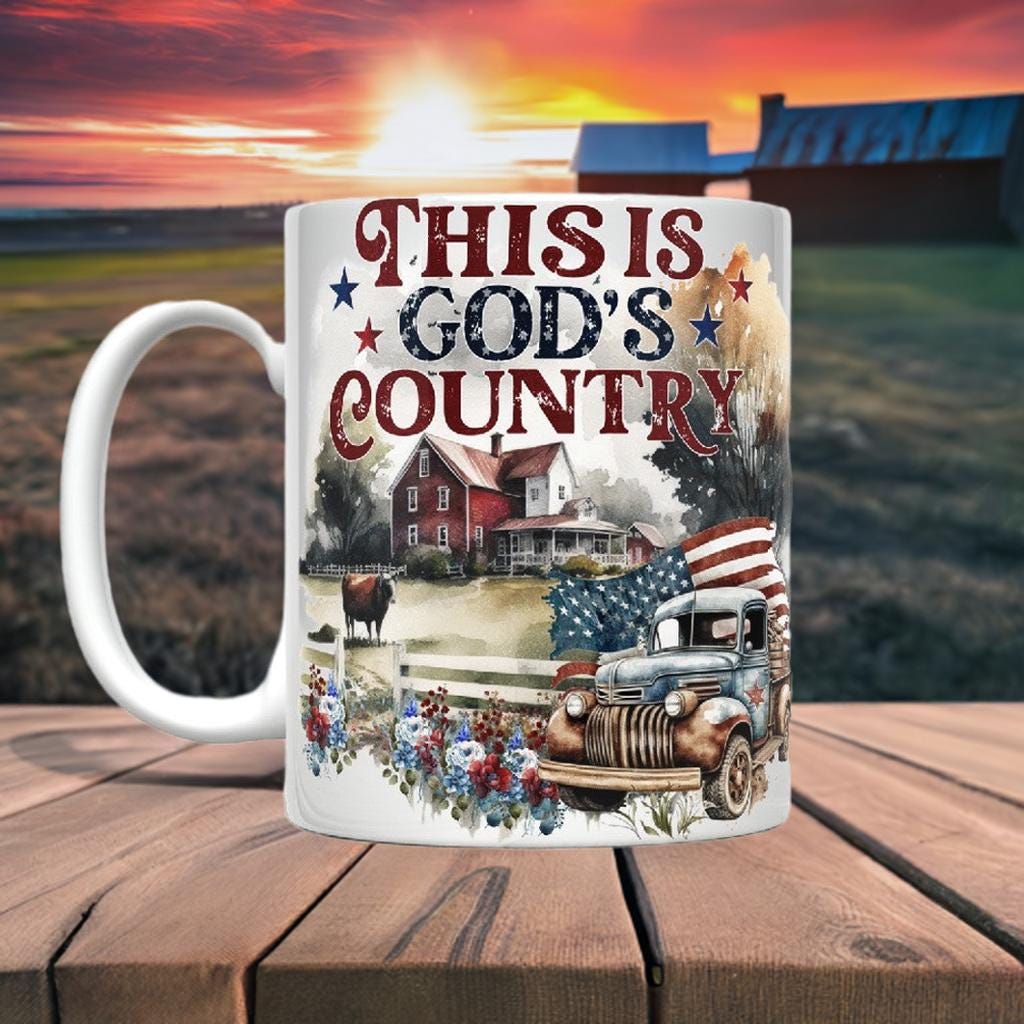 Discover the beauty of God's Country with our ceramic mugs, available in 11 oz and 15 oz sizes. Enjoy your favorite hot beverage while knowing it's safe for both the microwave and dishwasher. Experience the perfect blend of comfort and practicality - just like your faith.