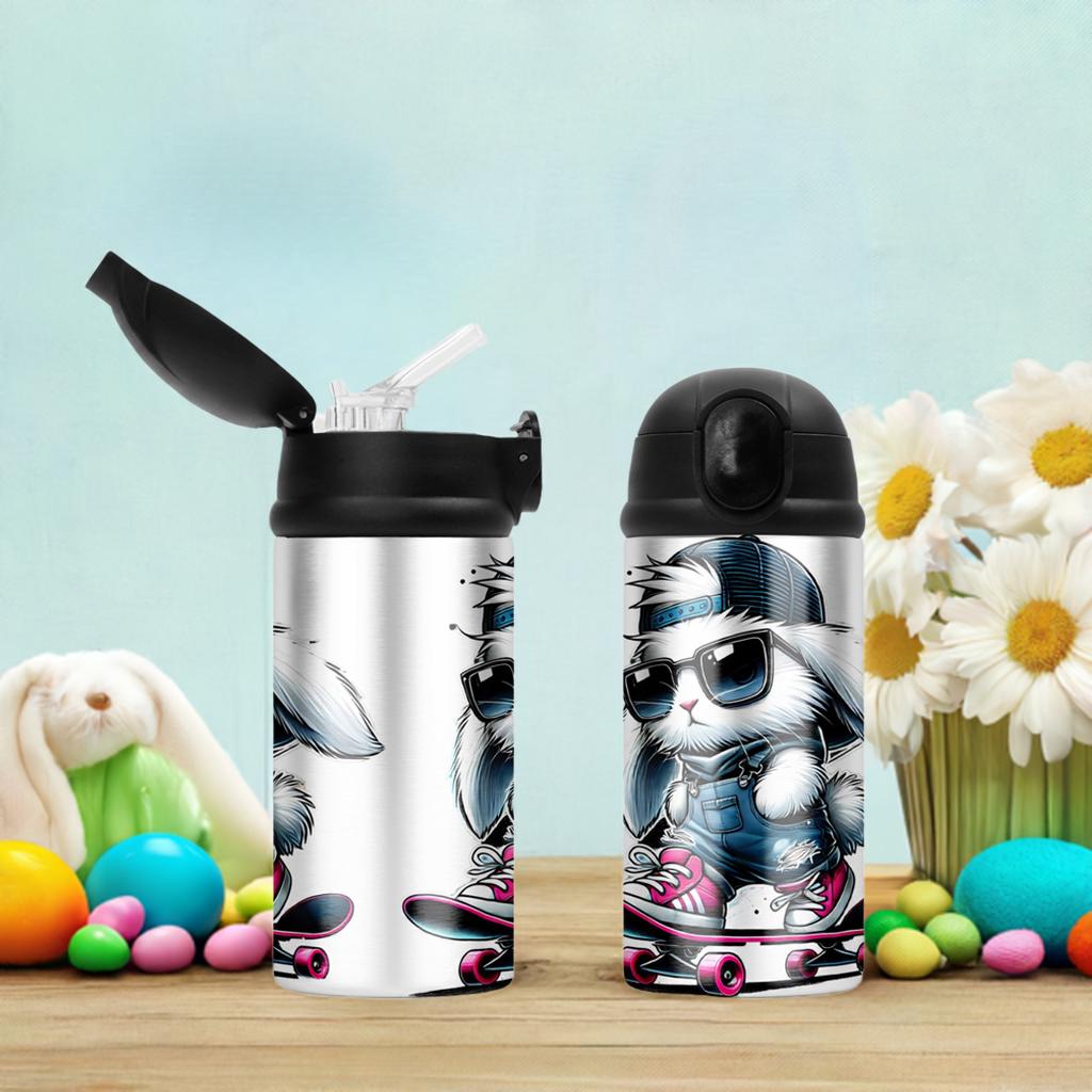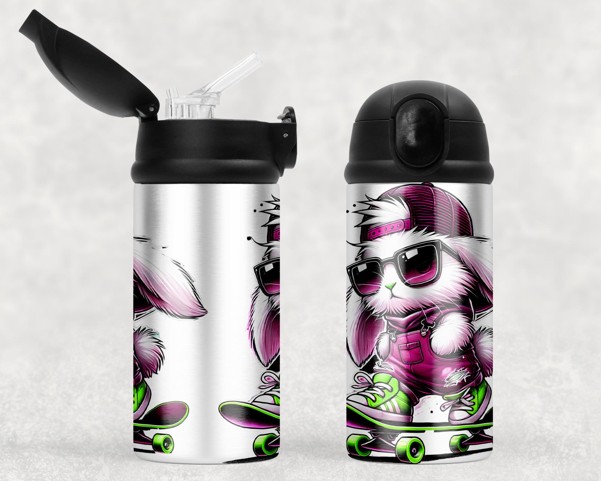 Stay hydrated and stylish with our Skater Bunny Water Bottles! These 12 oz bottles are made from durable stainless steel and feature a convenient flip top lid. Plus, with our quick 2 business day shipping, you'll be sipping in no time. Order now and up your hydration game!