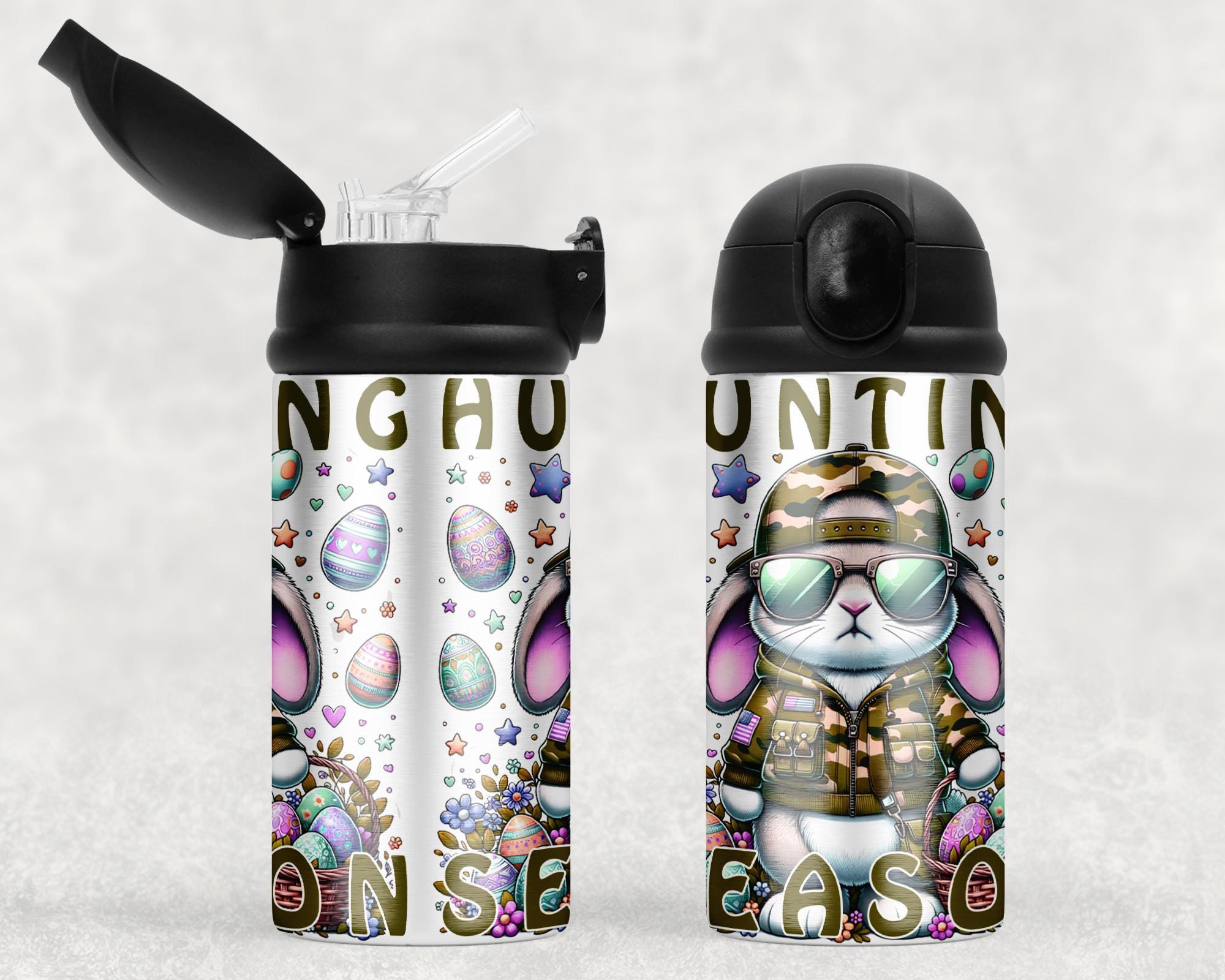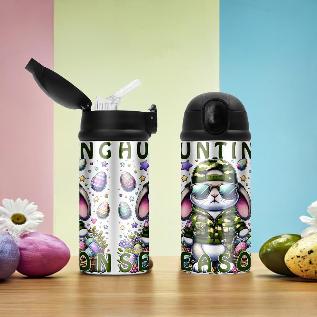 Stay hydrated in style with our Hunting Season Easter Water Bottles! These 12 oz bottles are made of durable stainless steel and feature a convenient fliptop lid. Perfect for outdoor adventures and always ready to ship in just 2 business days. Don't miss out on this must-have accessory for your next egg hunting trip!