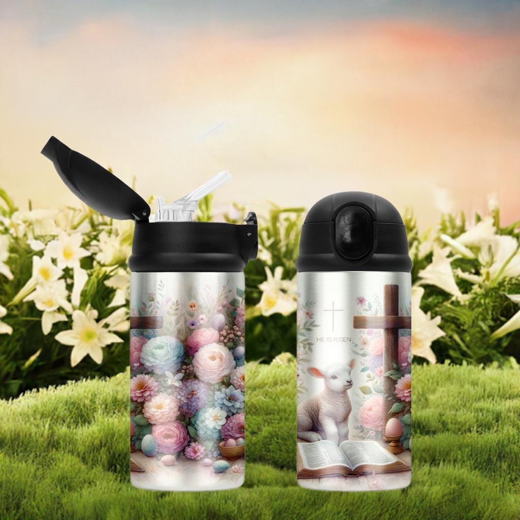 Stay hydrated and spread the good news with our 12 oz He is Risen Water Bottle! Made of durable stainless steel, it features a convenient fliptop lid and is guaranteed to be made and shipped within 2 business days. Carry your faith with you on-the-go and quench your thirst in style.