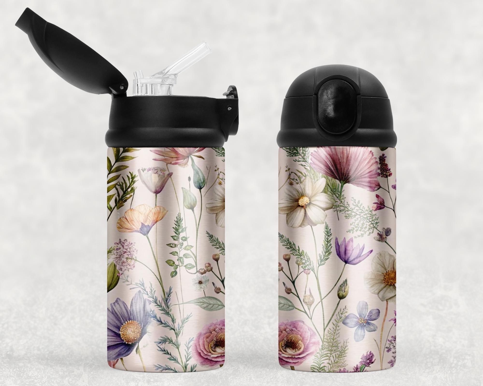 Quench your thirst in style with our Floral Water Bottles! These 12 oz bottles are made from durable stainless steel and feature a convenient fliptop lid. Plus, they're made and shipped in just two business days. Stay hydrated and fashionable with our Floral Water Bottles!