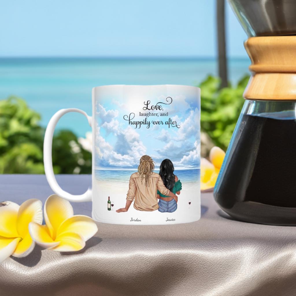 Start your day with a touch of love with our Couple in Love Customizable Mug. This 11 or 15 oz ceramic mug is both microwave and dishwasher safe, perfect for your busy mornings. Create a special moment with your significant other as you sip your coffee by the beach, featuring customizable characters and a live preview. Order yours today!