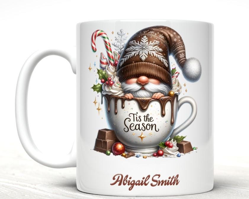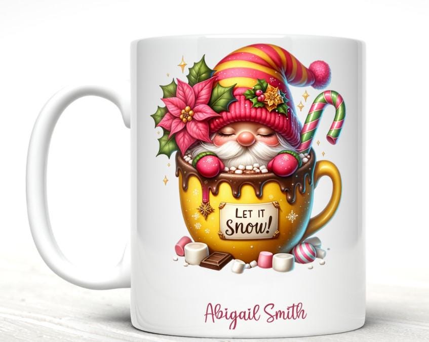 Transform your hot chocolate experience with our Personalized Hot Chocolate Gnome Mug! Enjoy a cozy 11 or 15 oz mug made from durable ceramic, perfect for microwave and dishwasher use. Choose from 21 adorable gnome designs and add your own text for a special touch. See your creation come to life with our live preview feature. Upgrade your hot chocolate game today!
