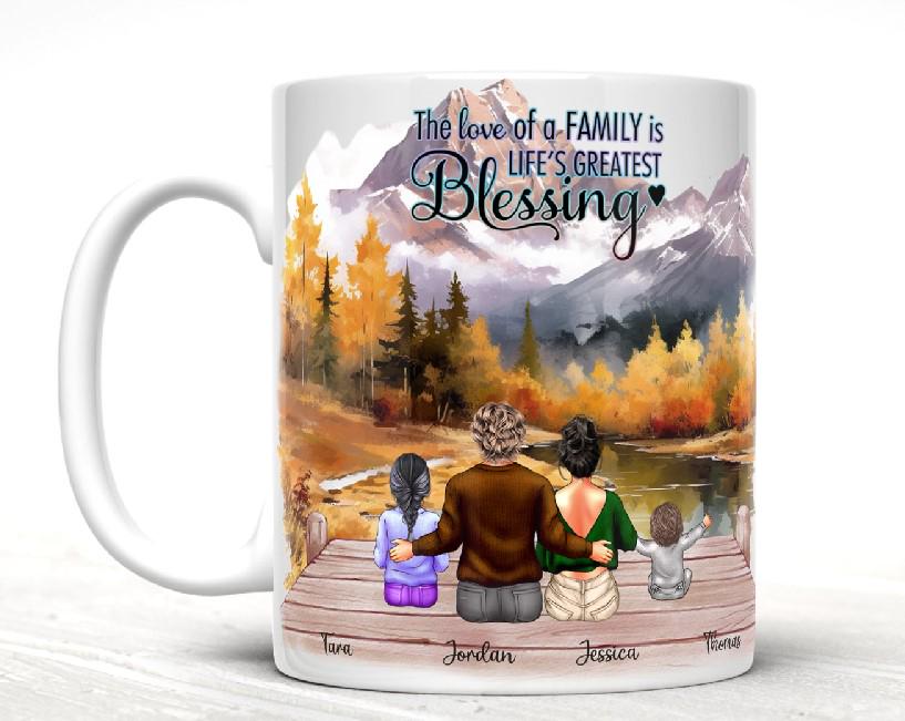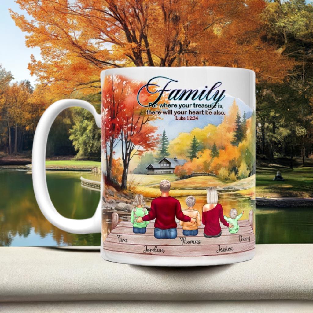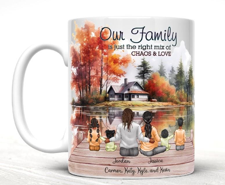 Get cozy with your loved ones this fall season and sip your favorite warm beverage in our customizable 11 or 15 oz ceramic mug. It's microwave and dishwasher safe, making it easy to use and clean. Perfect for family gatherings and embracing the joys of autumn. Customize the characters to look like your family members. 3 to 6 characters.