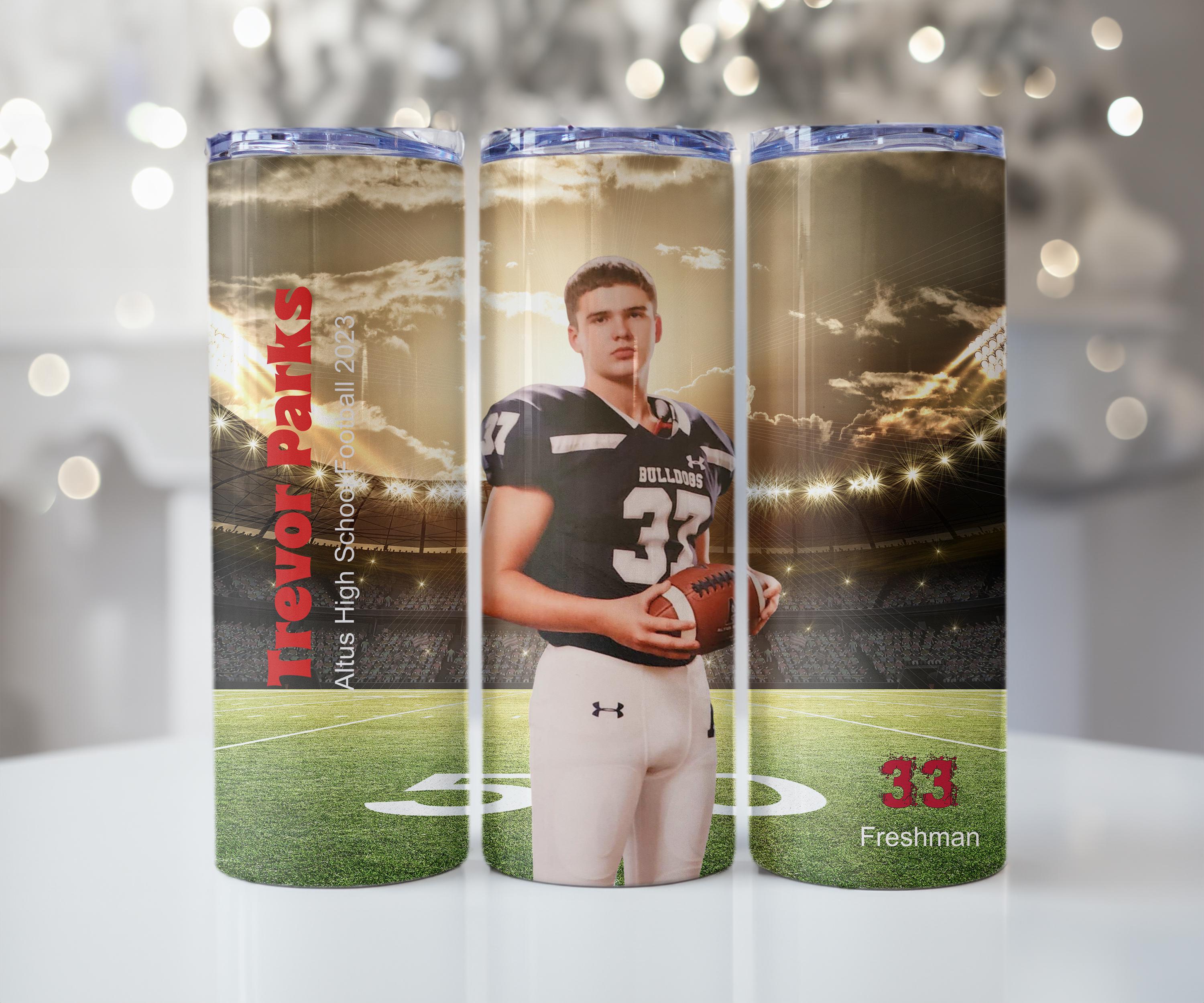 Elevate your game with our Customized Sports Tumblers! Personalize it with your favorite photo and enjoy easy sipping on the go with the included straw and lid. Keep it clean with the convenient cleaning brush. Get your game on!