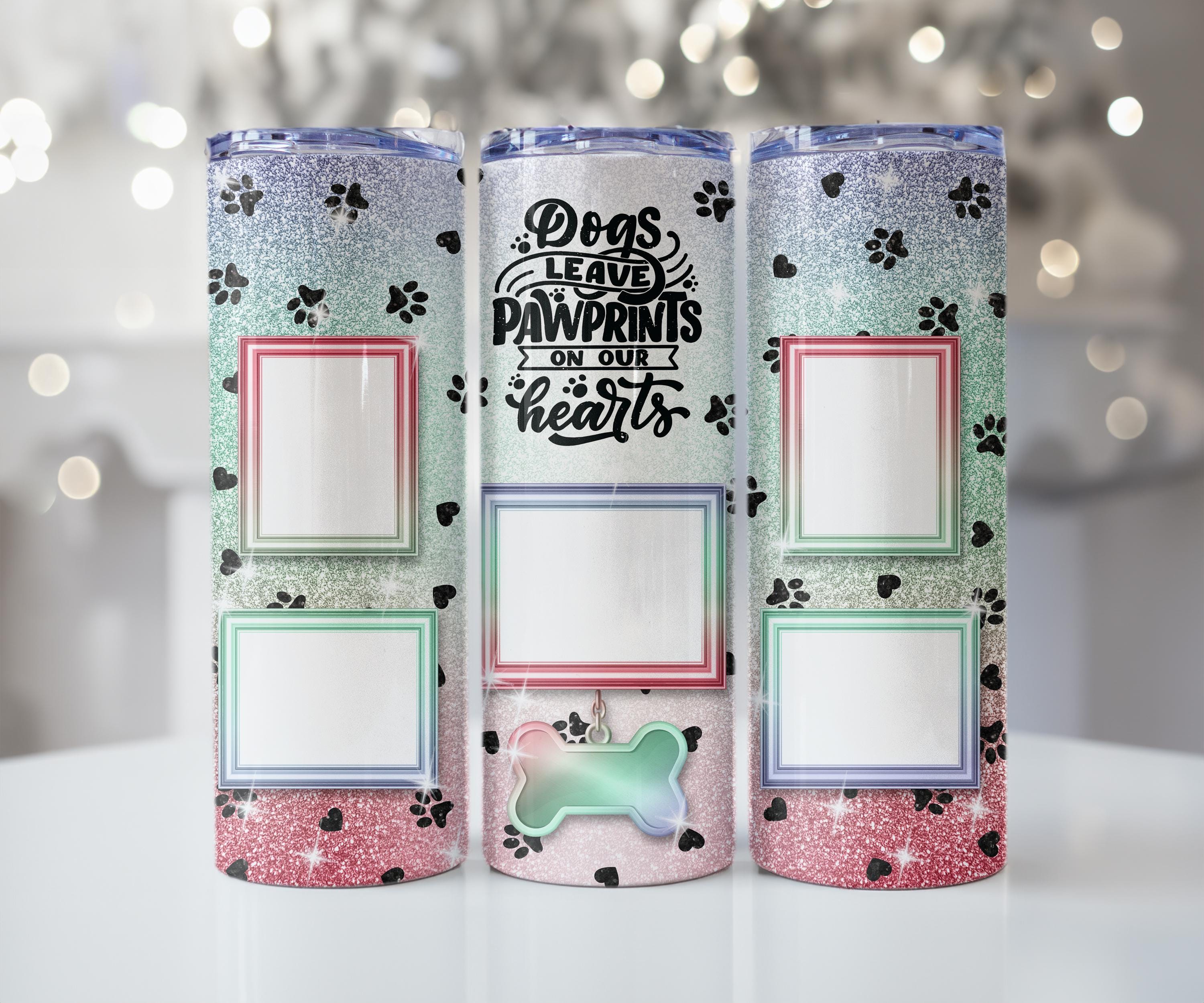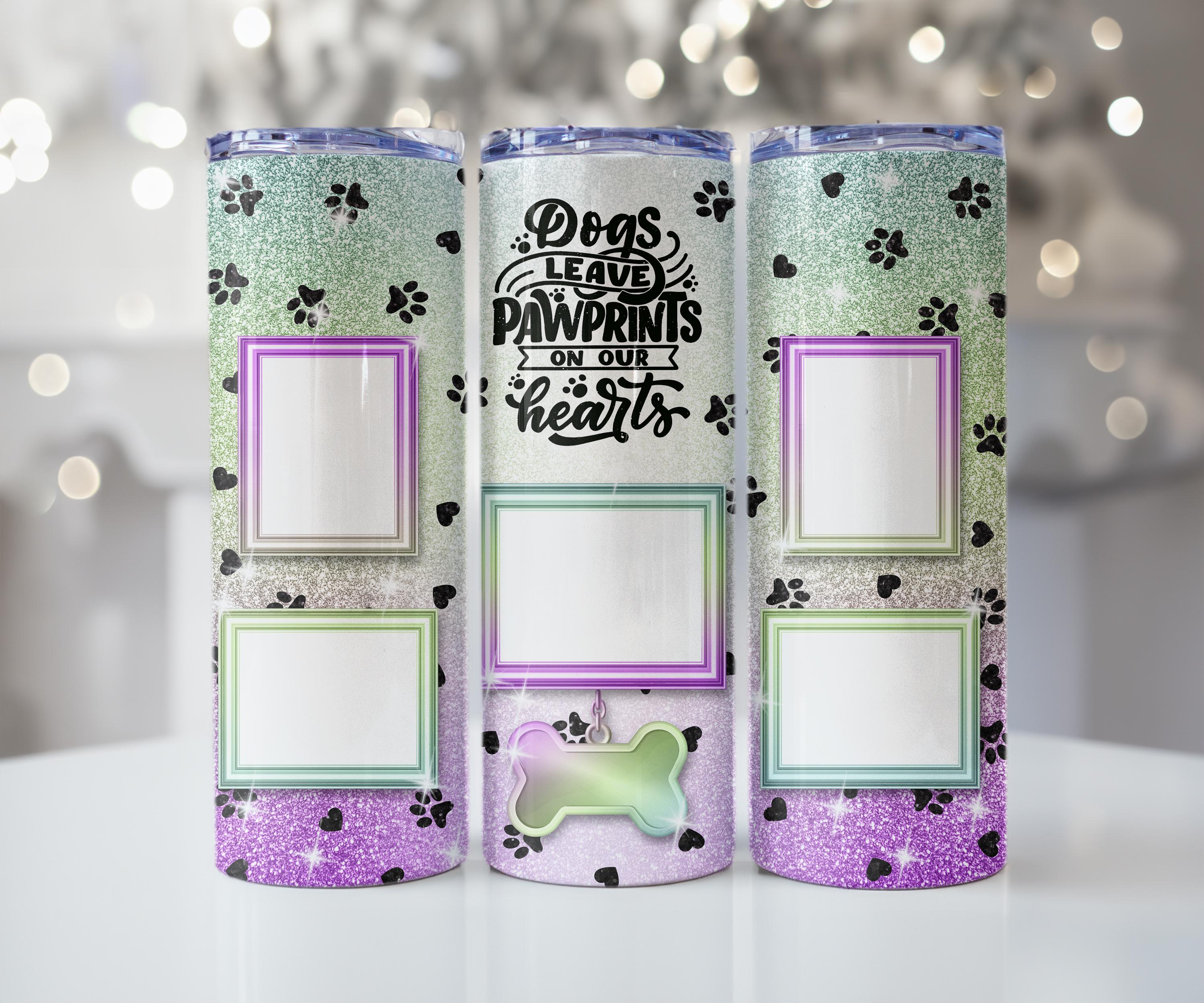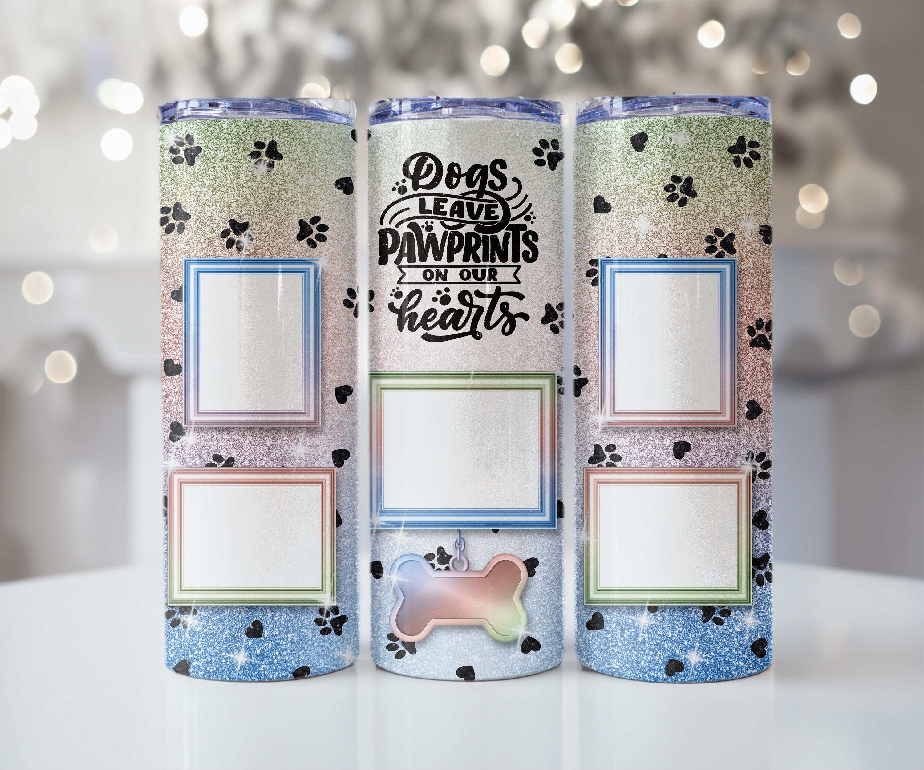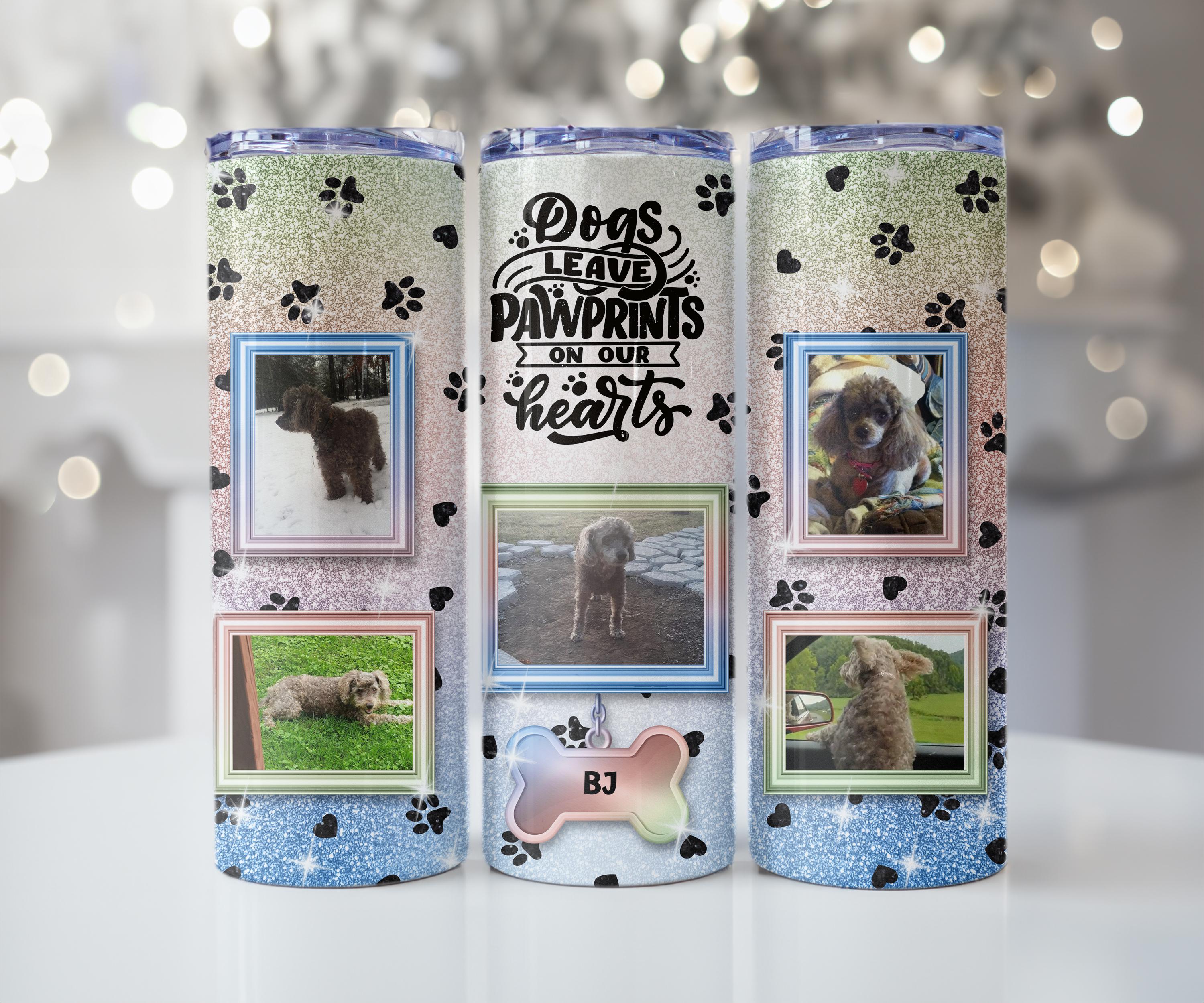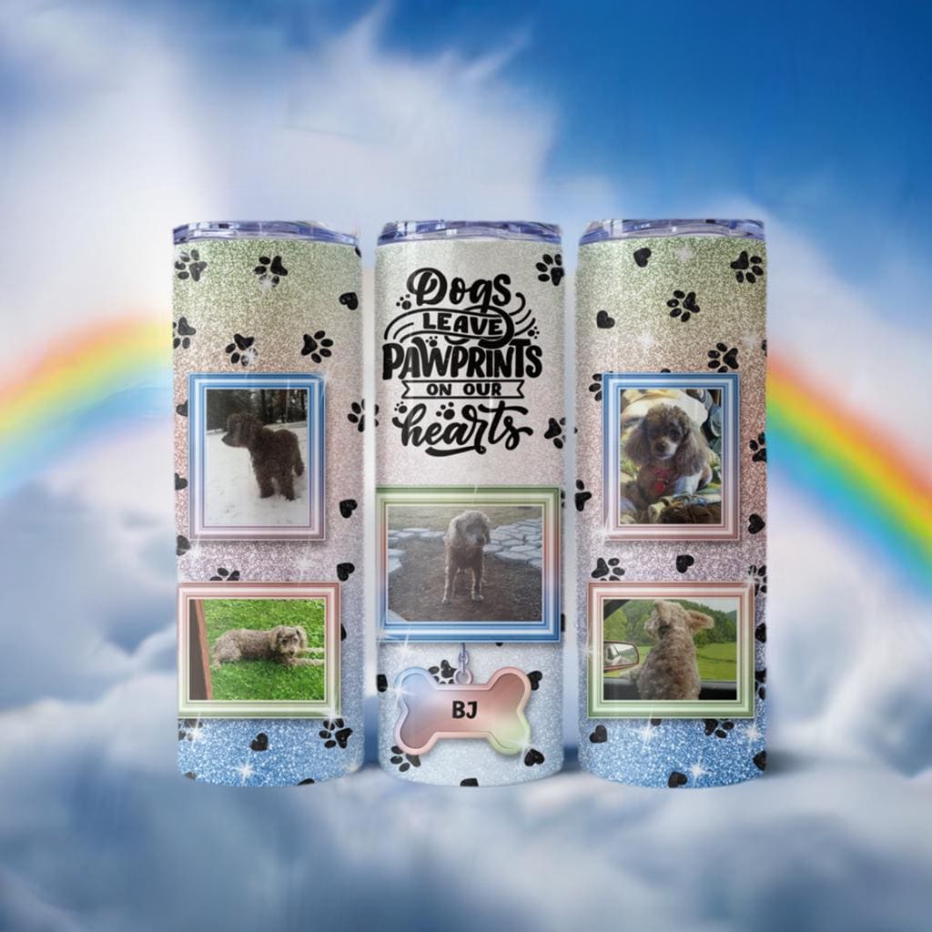 Keep your furry friend's memory close with the Paws on Our Hearts Photo Tumbler. Made of durable stainless steel, this tumbler features a lid and straw for convenience, and even includes a cleaning brush. Perfect for dog lovers, and the perfect way to remember those who have crossed over the rainbow bridge. Add photos for a personalized touch.