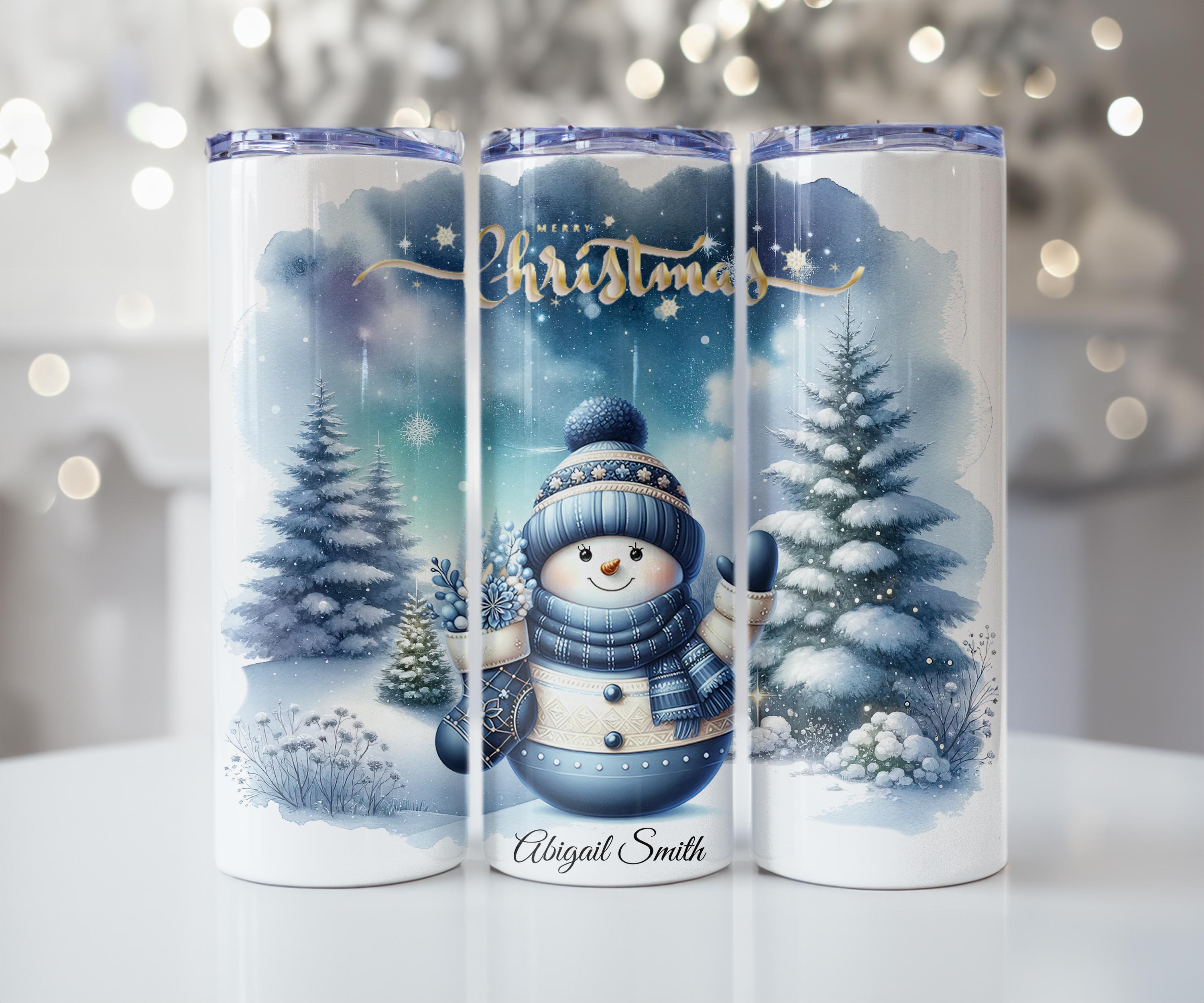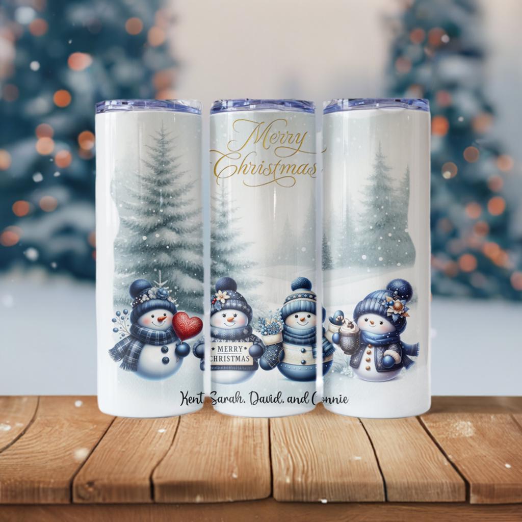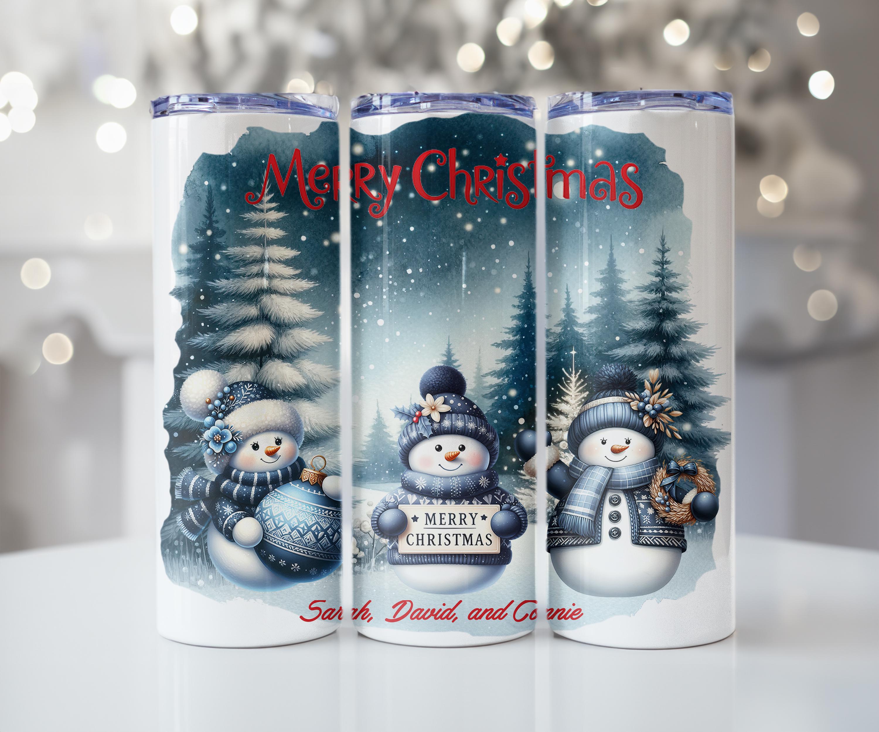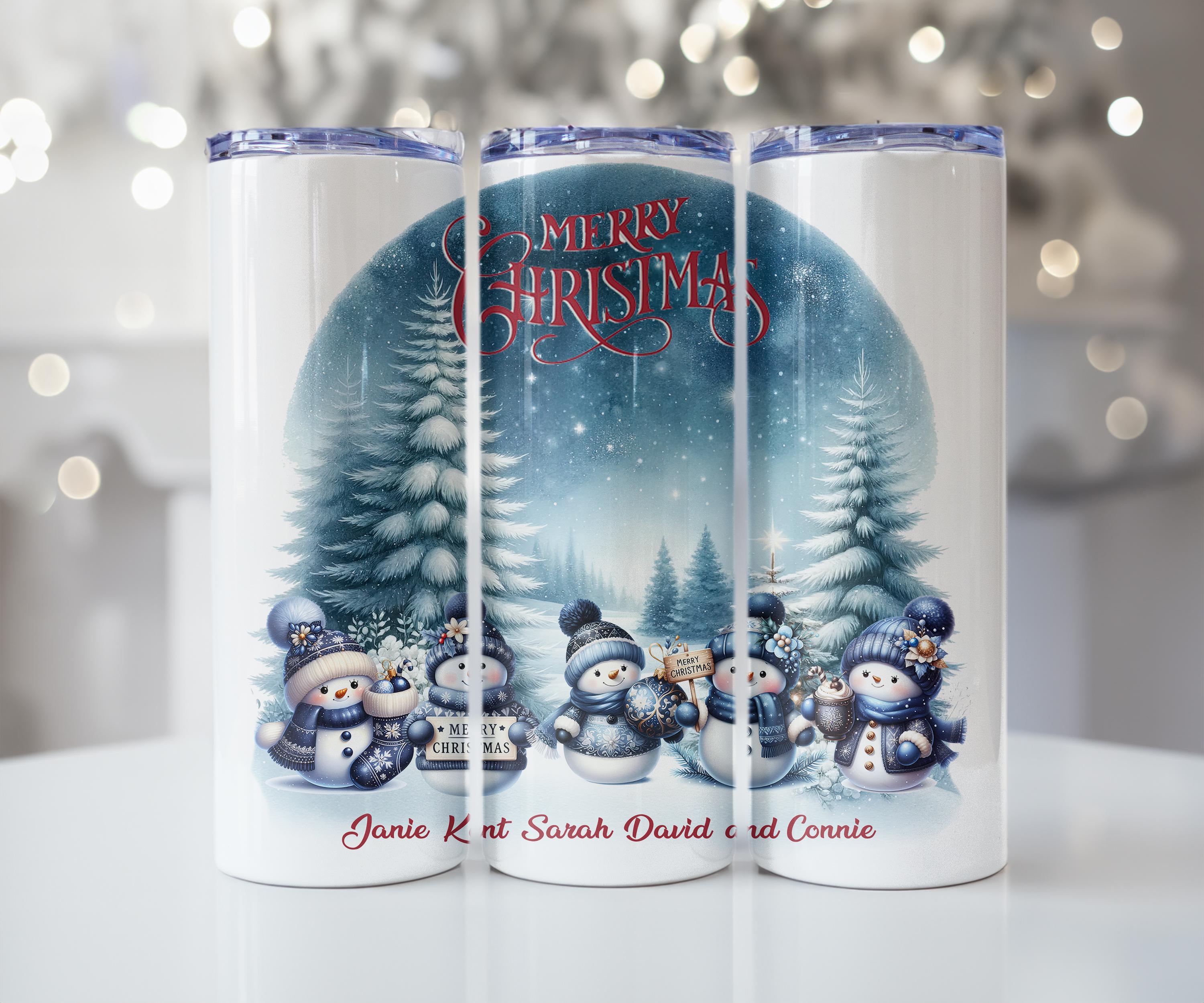 Stay hydrated this holiday season with our Blue Snowpeople Customizable Tumblers! These 20 oz tumblers are made from durable stainless steel and come with a convenient lid, metal straw, and cleaning brush. Personalize it with 1 to 5 characters and see a live preview of your design. Spread Christmas cheer with each sip!