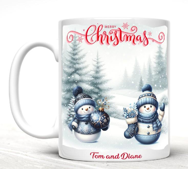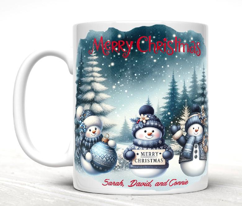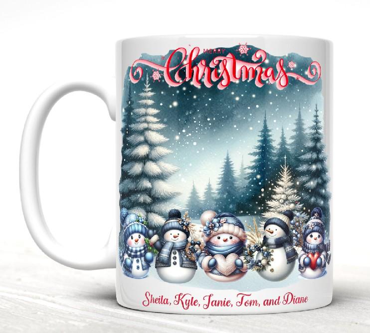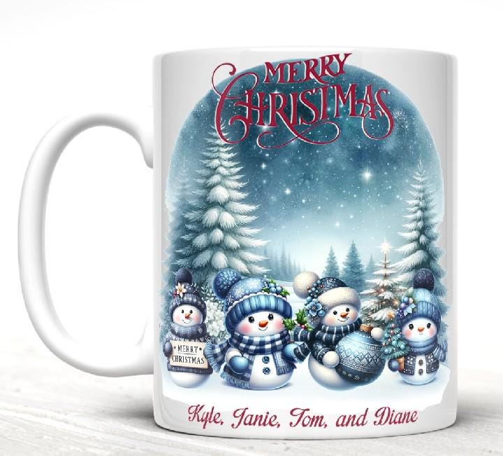 This cleverly designed Blue Snowpeople Customizable Mug is a Christmas must-have! With your choice of 1 to 5 characters, this ceramic wonder is both microwave and dishwasher safe. Plus, with a live preview feature, it's never been easier to get exactly what you want. Indulge in a little festive fun (without the fuss)!