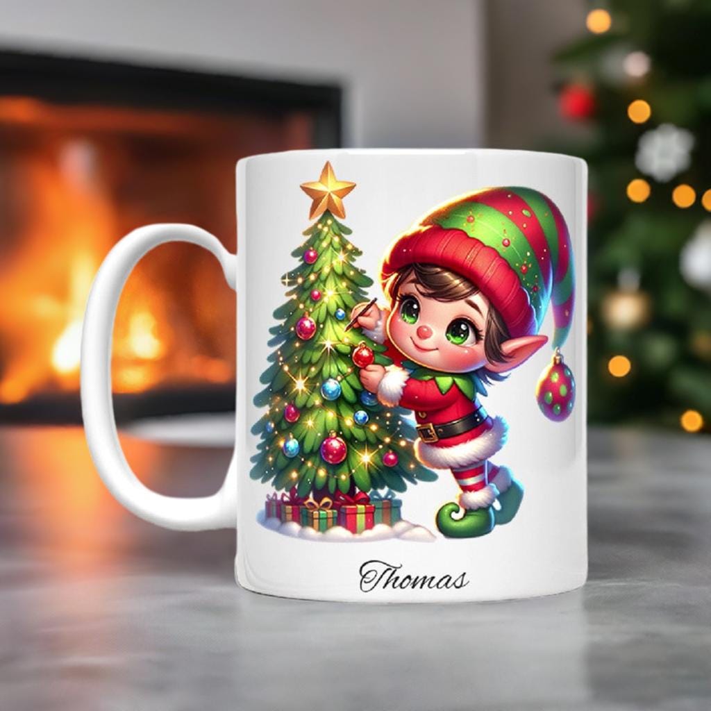Get into the holiday spirit with our Christmas Elf Personalized Mug! Made from durable ceramic, this 11 or 15 oz mug is microwave and dishwasher safe for convenience. Personalize it with your choice of text and elf design and see a live preview before you buy. Spread cheer with every sip!