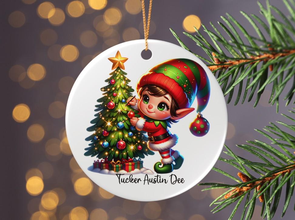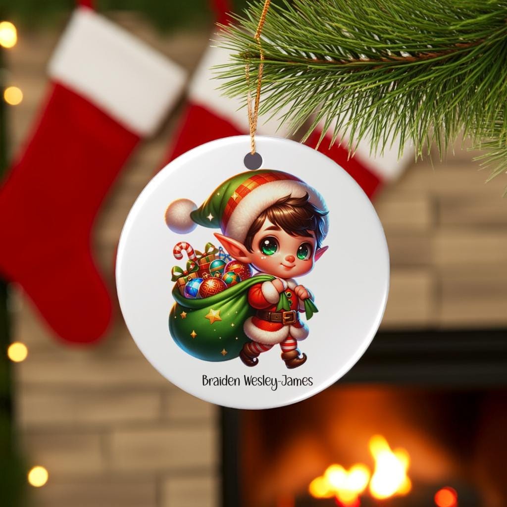 Add a touch of personalized magic to your Christmas tree with our Christmas Elf Personalized Ornament! Made with durable MDF material and featuring a variety of elf options, this ornament allows you to add your own text and even preview the design before purchasing. Make your holiday season even more special with this unique and customizable addition to your decorations. 3-inch diameter.