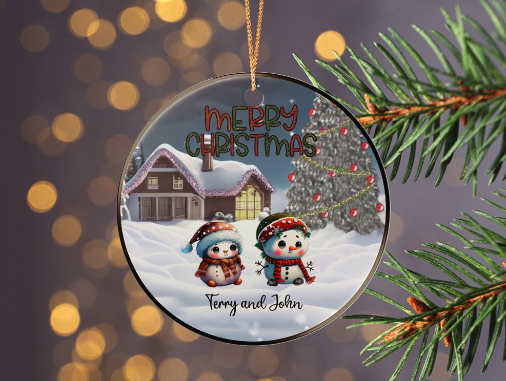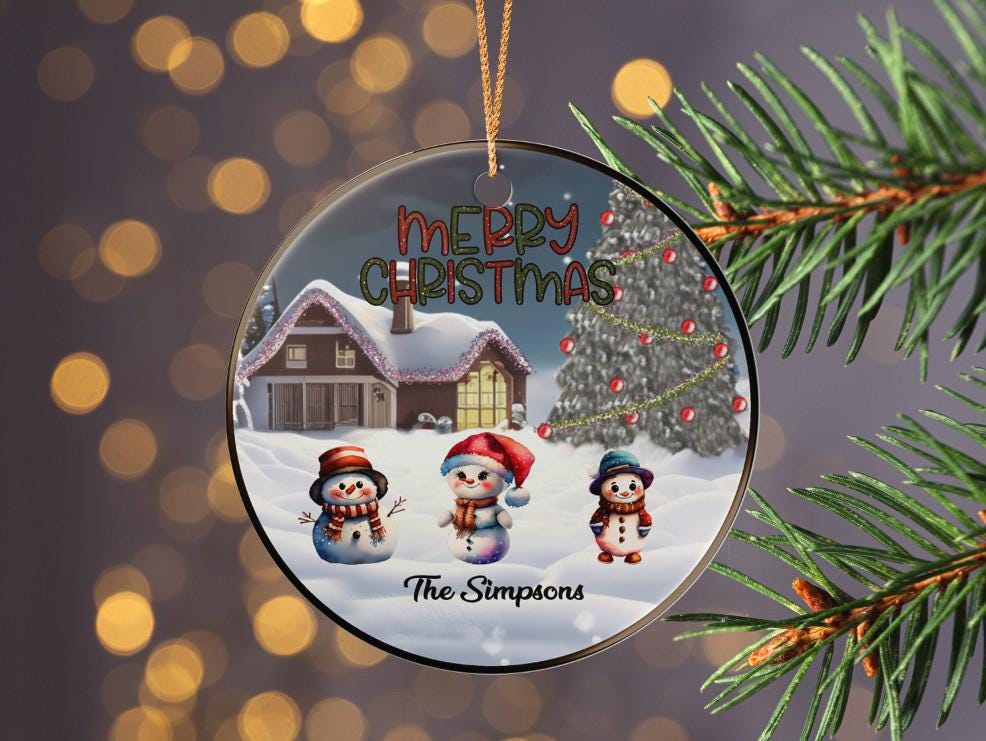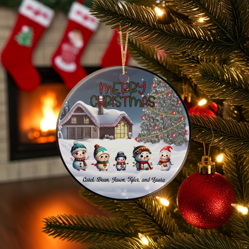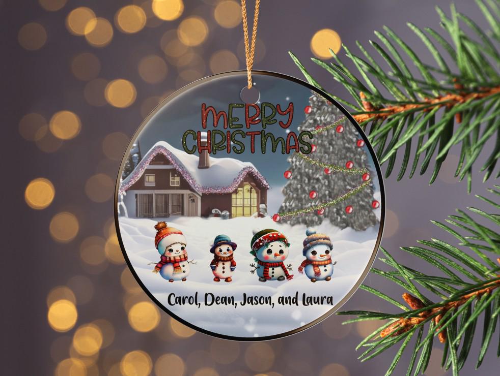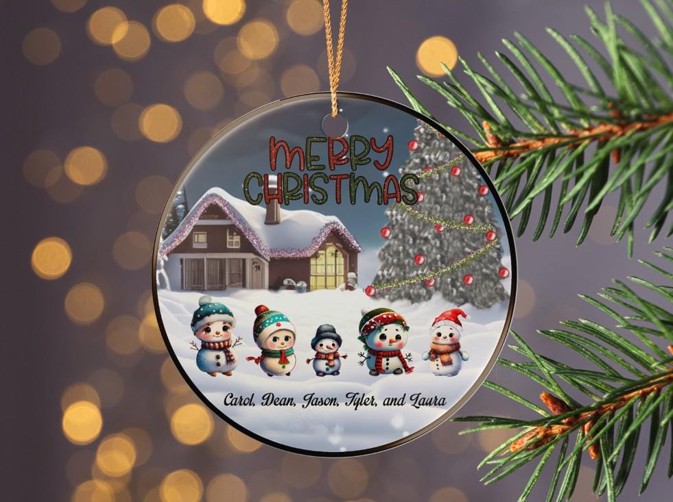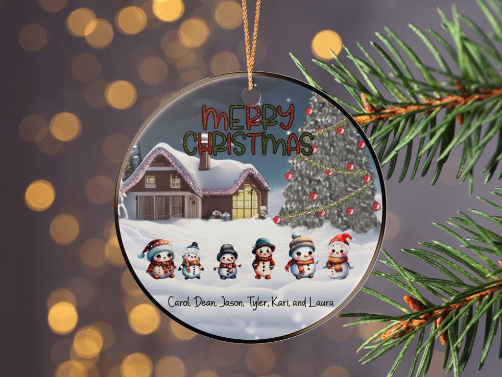 Create a one-of-a-kind holiday decoration with our Customizable Snow People Ornament! Choose up to 6 characters to represent your family or friends, preview the design, and receive a 3-inch diameter ornament made with your choice of durable MDF material or ceramic, Perfect for Christmas!
