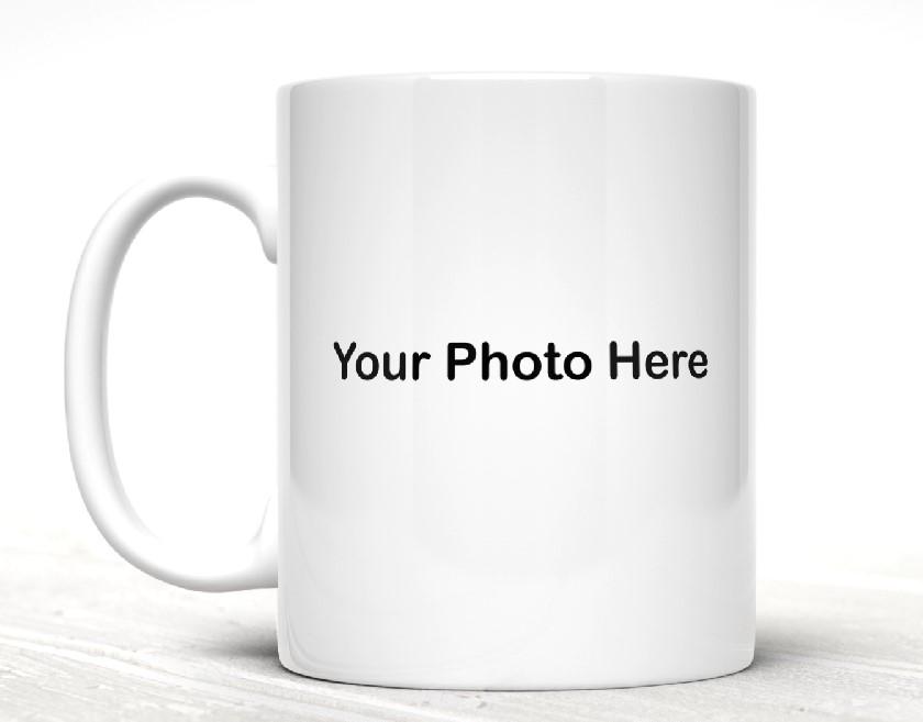 Upload photo of your choice. Please make sure to use high resolution images. Live preview of customization. *Actual image is larger than it appears in preview and covers more area on the mug as shown in display photos.