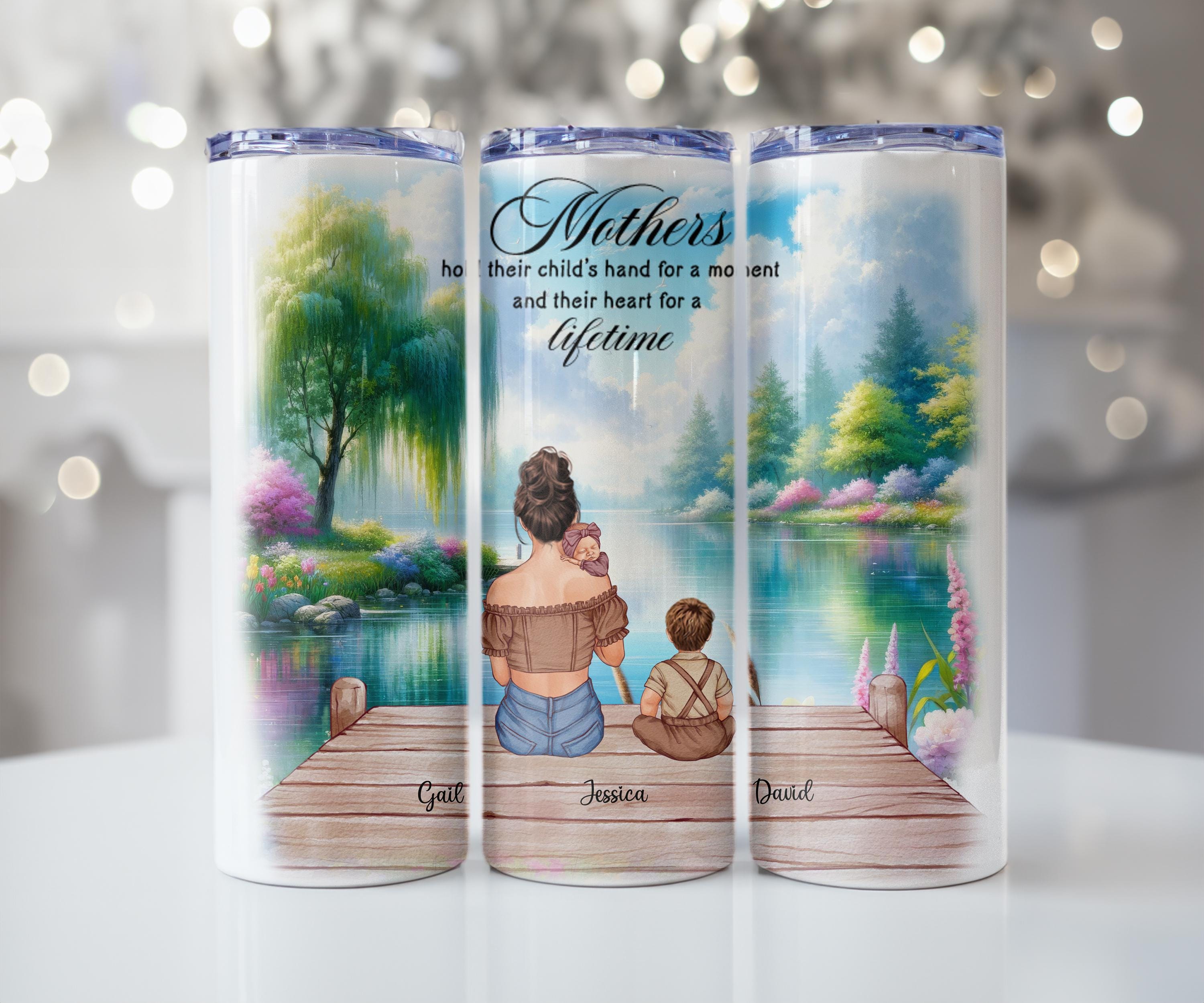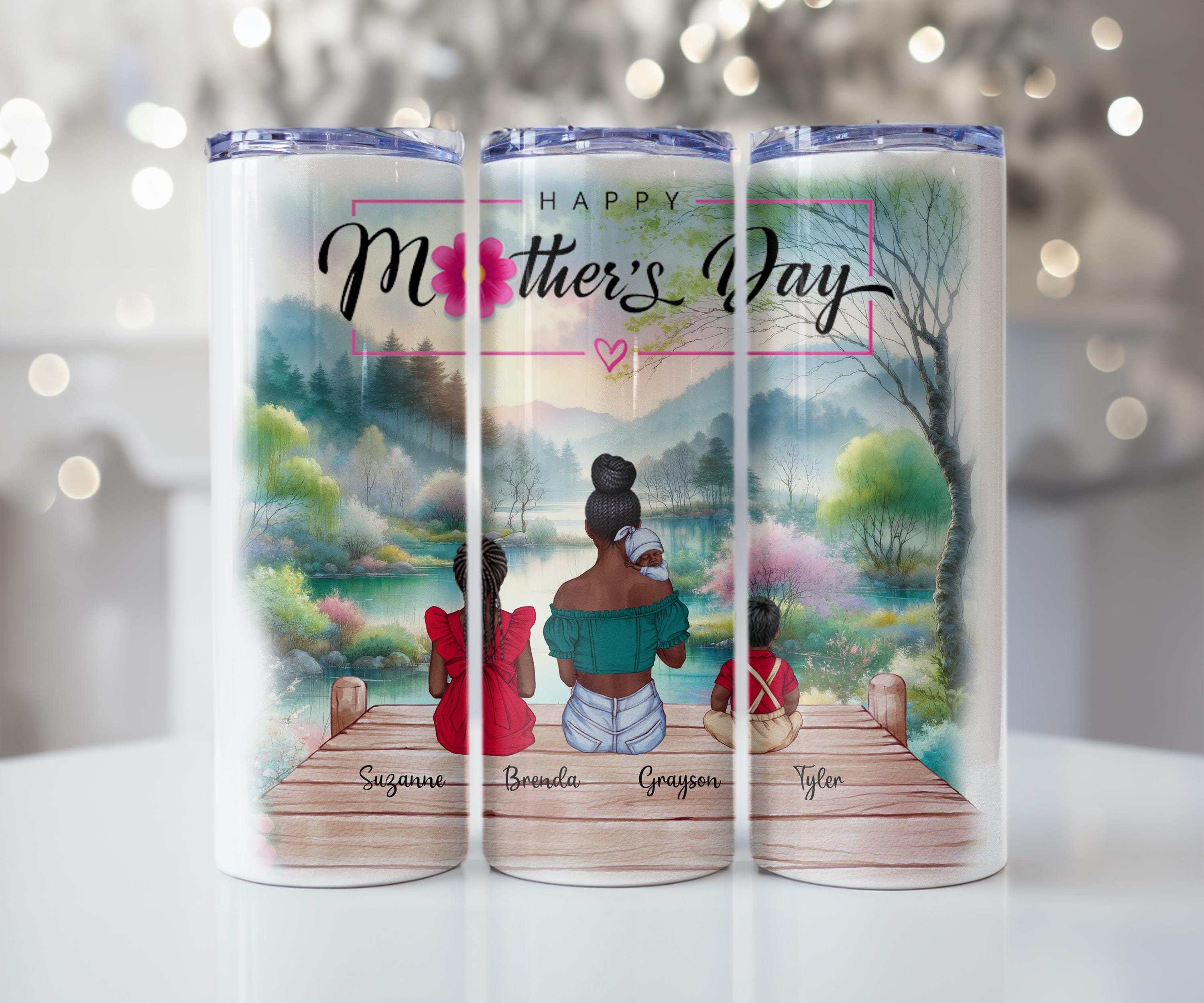 Celebrate Mother's Day with this stainless-steel tumbler featuring customizable characters, including a newborn! Comes with a lid and straw, plus a cleaning brush. Preview your design with live preview! (Perfect for moms who love practicality and personalization!)