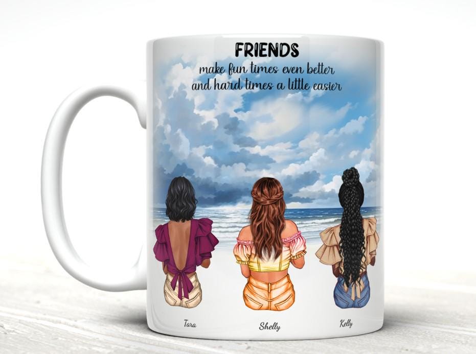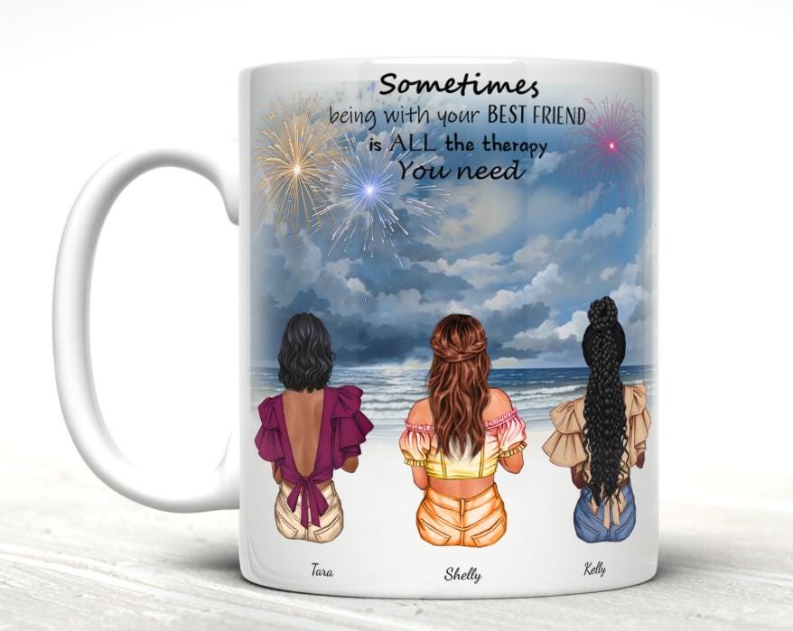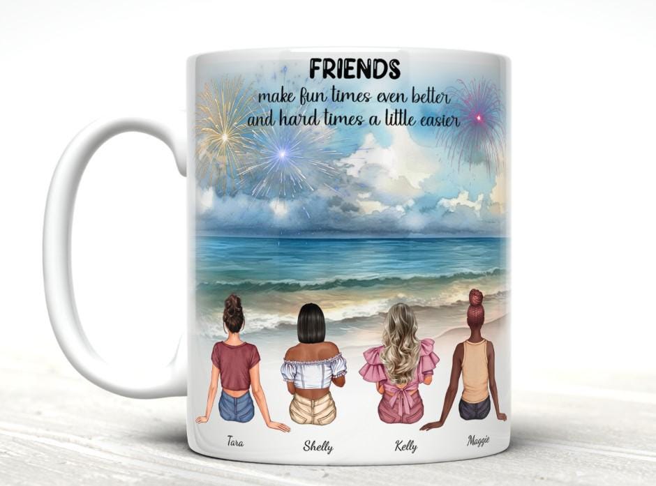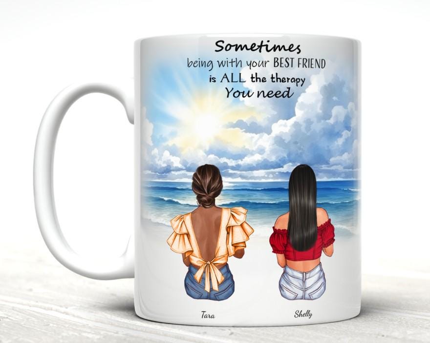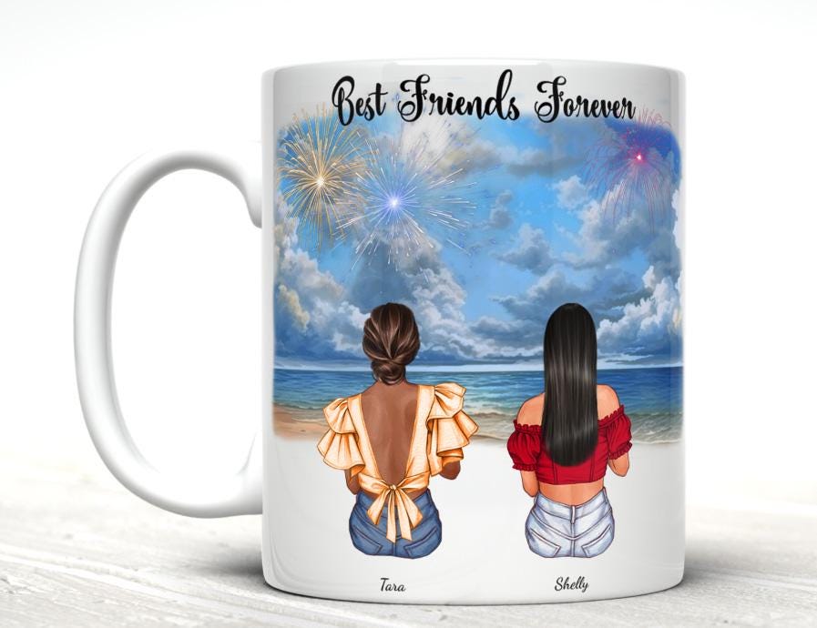 Enjoy your favorite drink with the Best Friends on the Beach Customizable Mug. Available in 11 or 15 oz ceramic sizes, this mug is microwave and dishwasher safe for everyday convenience. Personalize it with 2 to 5 characters and see your design come to life with a live preview. Made and shipped within two business days, it’s the perfect, quick gift to celebrate friendship by the shore.