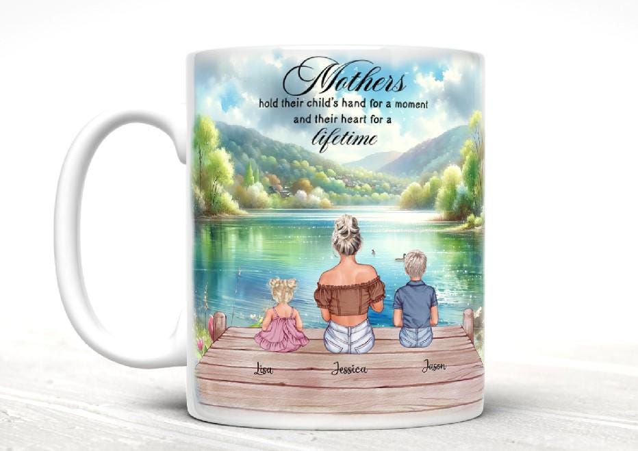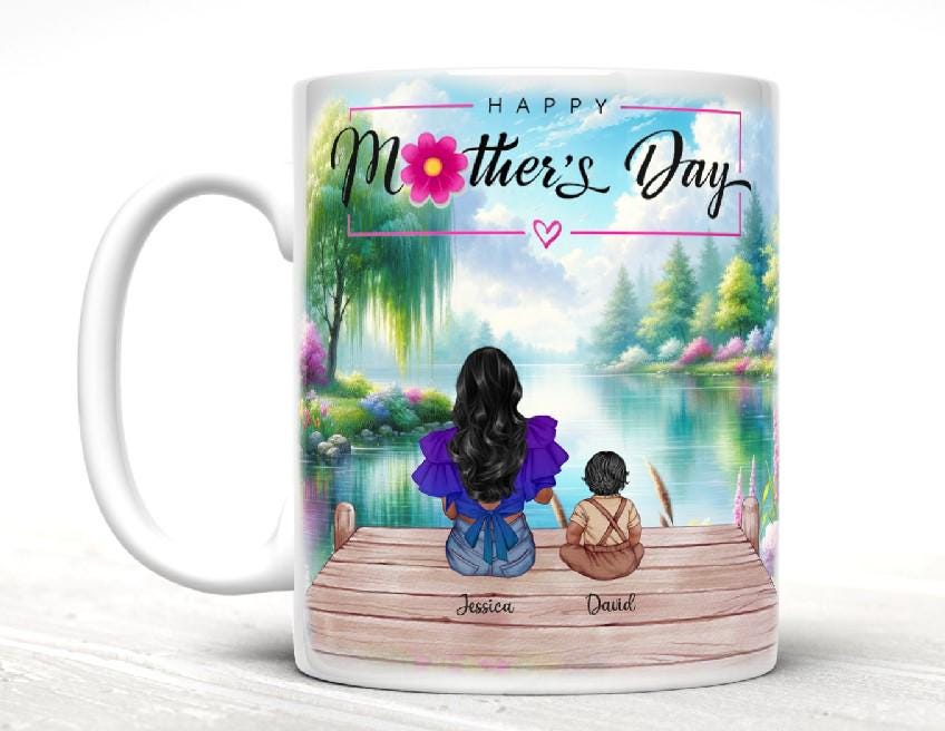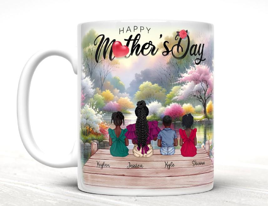 Celebrate Mother's Day with our customizable 11 or 15 oz ceramic coffee mug! Show Mom how much you love her with a special gift featuring unique characters of her and her children. Microwave and dishwasher safe, this mug is both practical and sentimental. Use our live preview to create the perfect personalized present.