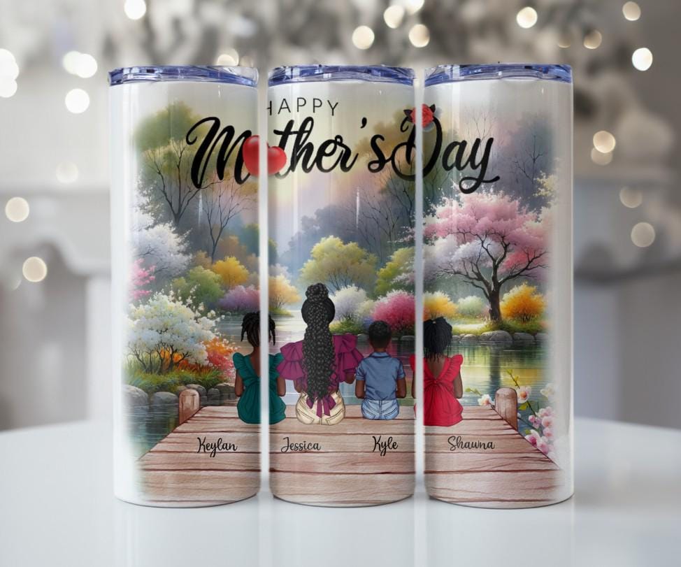 Enjoy your favorite beverages in style with this 20 oz stainless-steel tumbler, designed to keep drinks at the perfect temperature. The customizable design makes it a heartfelt gift for Mother's Day, celebrating the special bond between mother and children. It features a durable plastic lid, a metal straw for eco-friendly sipping, and a cleaning brush for easy maintenance. Crafted and shipped within 2 business days, this tumbler combines practicality with personalized charm, making every sip memorable.