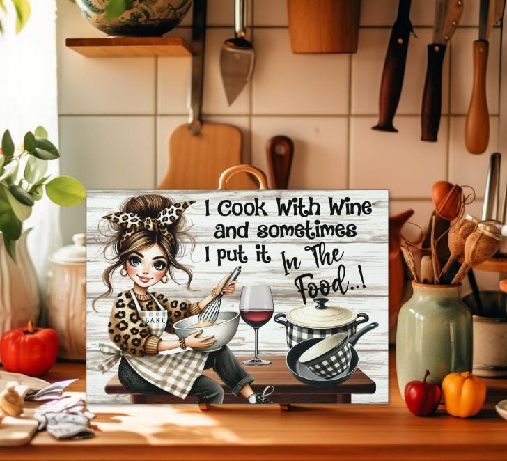 Raise a glass to the perfect kitchen companion! Our Cooking with Wine Cutting Board is a must-have for the culinary connoisseur.