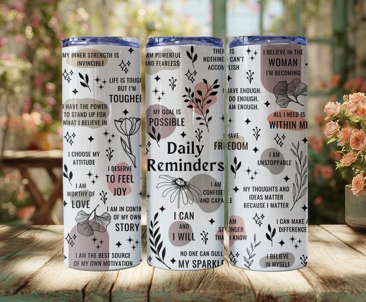 Elevate your daily routine with our Daily Reminder Tumbler. Order yours today and carry motivation wherever you go!