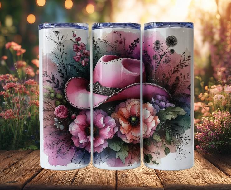Stay hydrated and fashionable with the Pink Cowgirl Hat Tumbler – the ideal choice for cowgirls at heart!