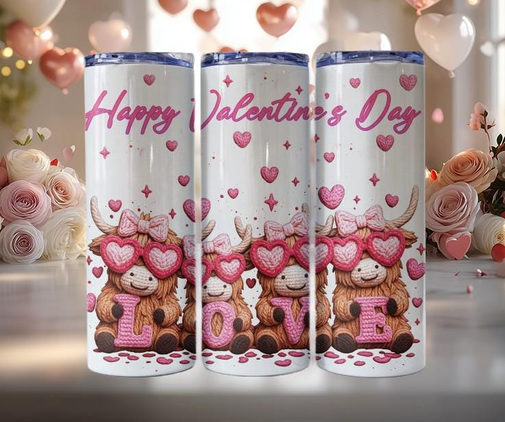 Celebrate love this Valentine's Day with our charming Highland Cows Tumbler! This 20 oz stainless steel tumbler features a delightful design that captures the whimsical spirit of these beloved Scottish cattle, making it a perfect gift for animal lovers and a fun addition to your drinkware collection.