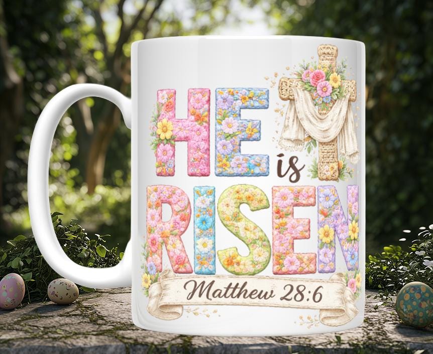 A thoughtful choice for moms, grandmas, church friends, Bible study groups, or anyone who loves faith‑based décor with a handmade feel. These mugs make beautiful Easter basket additions, seasonal kitchen accents, or everyday favorites that inspire with every sip.