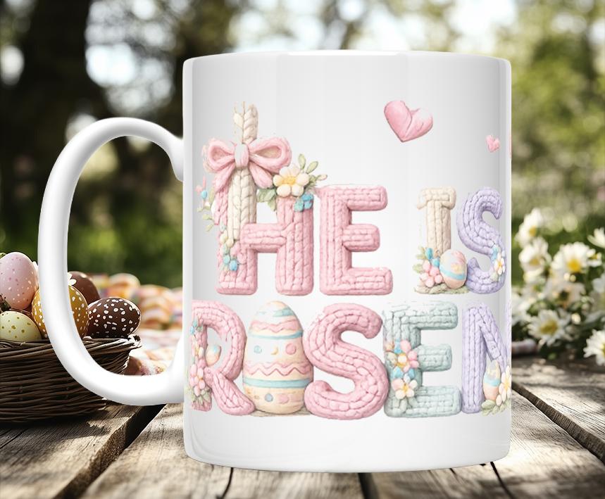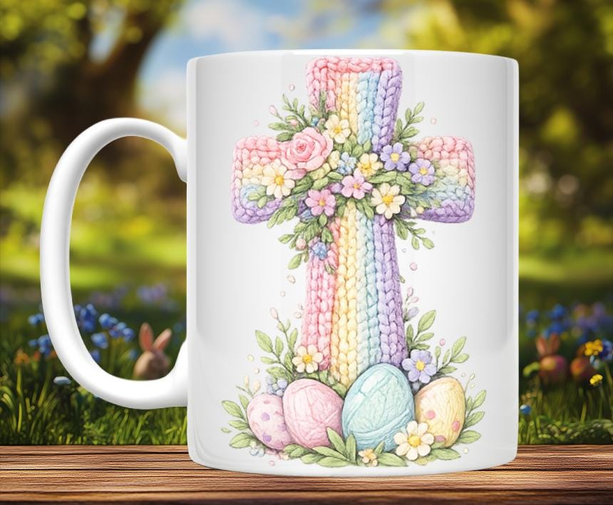 A warm, faith‑inspired way to celebrate the season, these Knitted Image Religious Easter Mugs feature artwork designed to look like hand‑stitched knit patterns. With 7 meaningful styles to choose from and two size options—11 oz or 15 oz—each mug blends a cozy, homespun aesthetic with uplifting Easter themes.